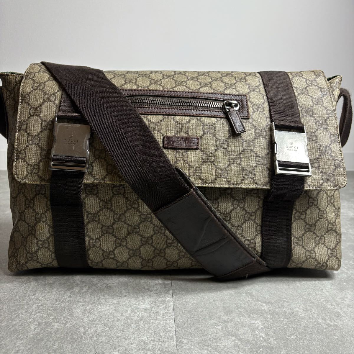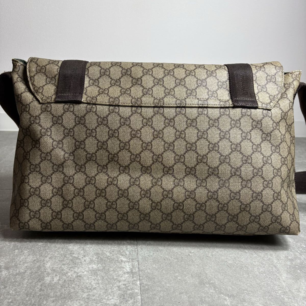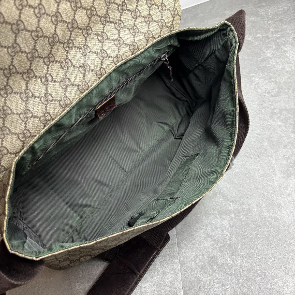 定価25万/廃盤モデル◎ GUCCI グッチ メッセンジャーバッグ ショルダー クロスボディ 肩掛け 斜め掛け GGプラス 金具 PVC レザー 茶