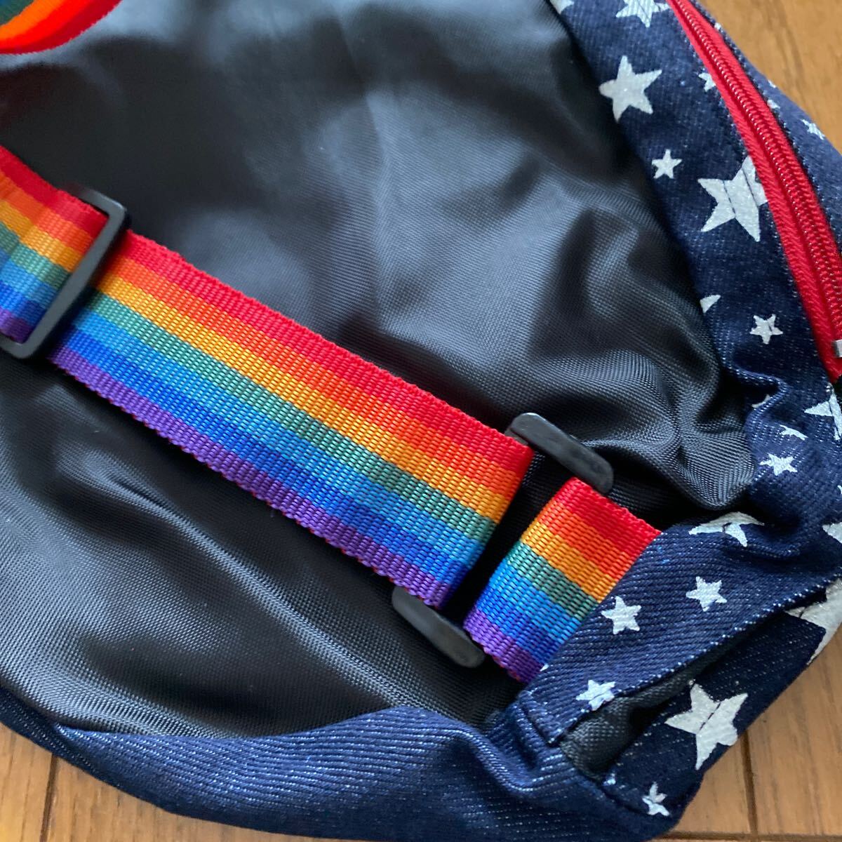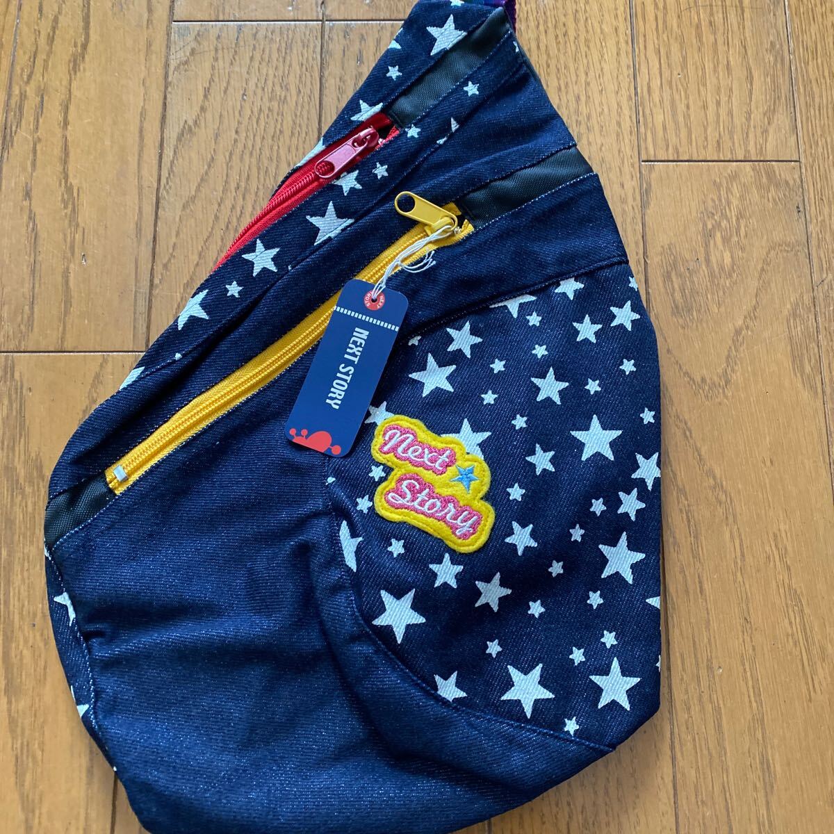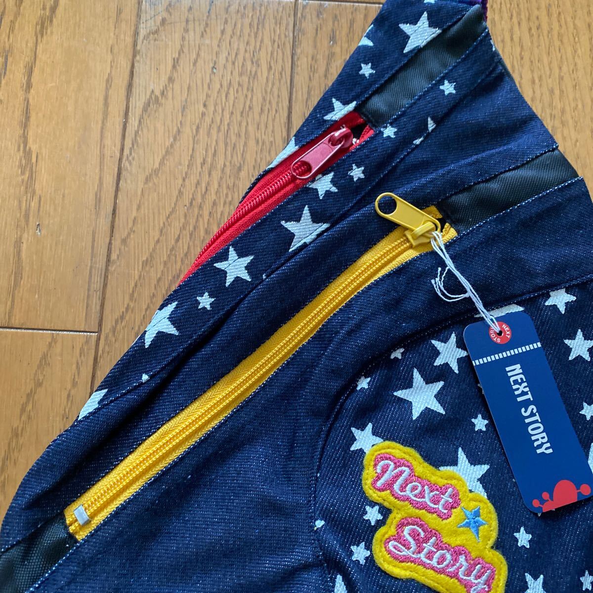 ミキハウス系セカンドブランド、ネクストストーリーのボディバックです。ベルト調節機能付きです。