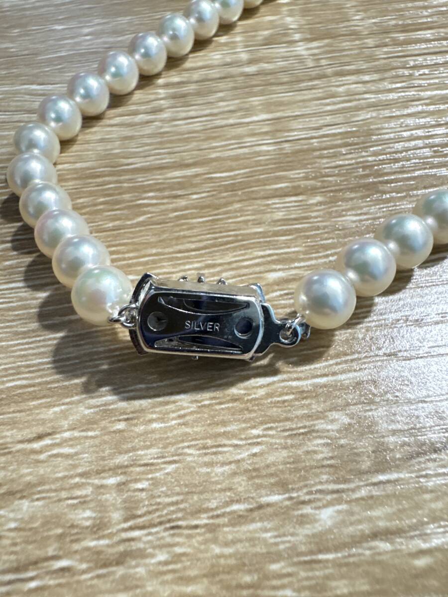 パール ネックレス 真珠 約6.7-7.2mm玉 アクセサリ SILVER 刻印 クラスプ ジュエリー