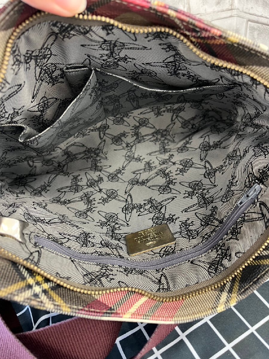 Vivienne Westwood ヴィヴィアンウエストウッド ショルダーバッグ タータンチェック柄 PVC 斜め掛け 赤系 チェック