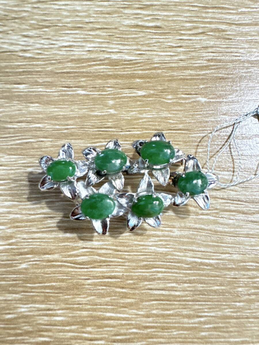 ブローチ SV 刻印 銀 シルバー アクセサリ ジュエリー 翡翠 ヒスイ