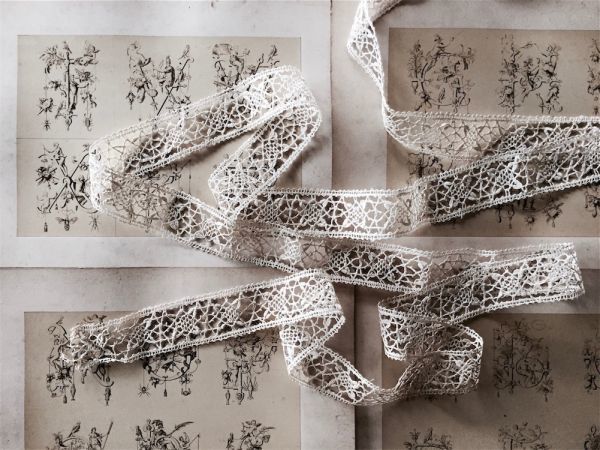残3 19世紀 フランス リネン 冬空の星々とボビンレース アンティーク Le Puy 3.8X100c ル・ピュイ 麻 ハンドメイド ヴィンテージ br24nm