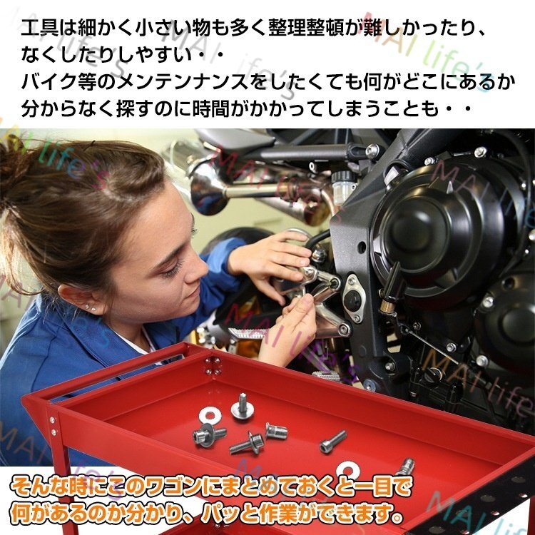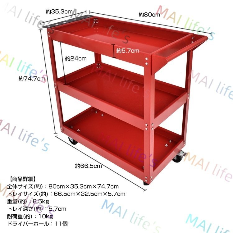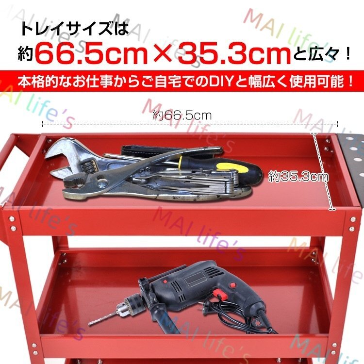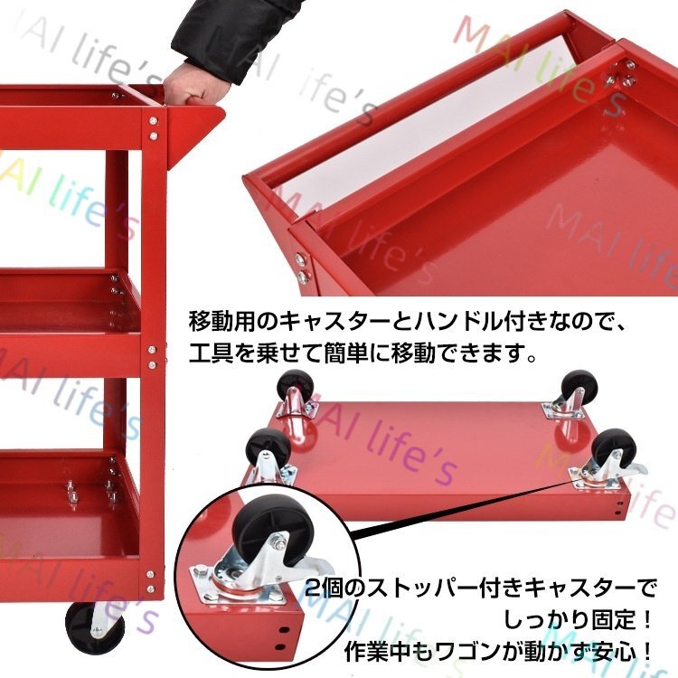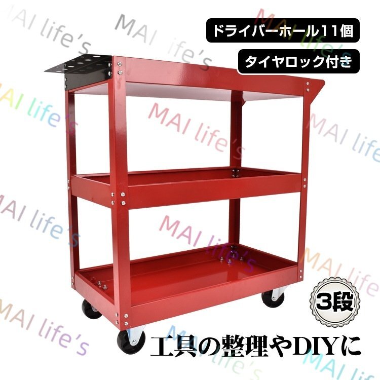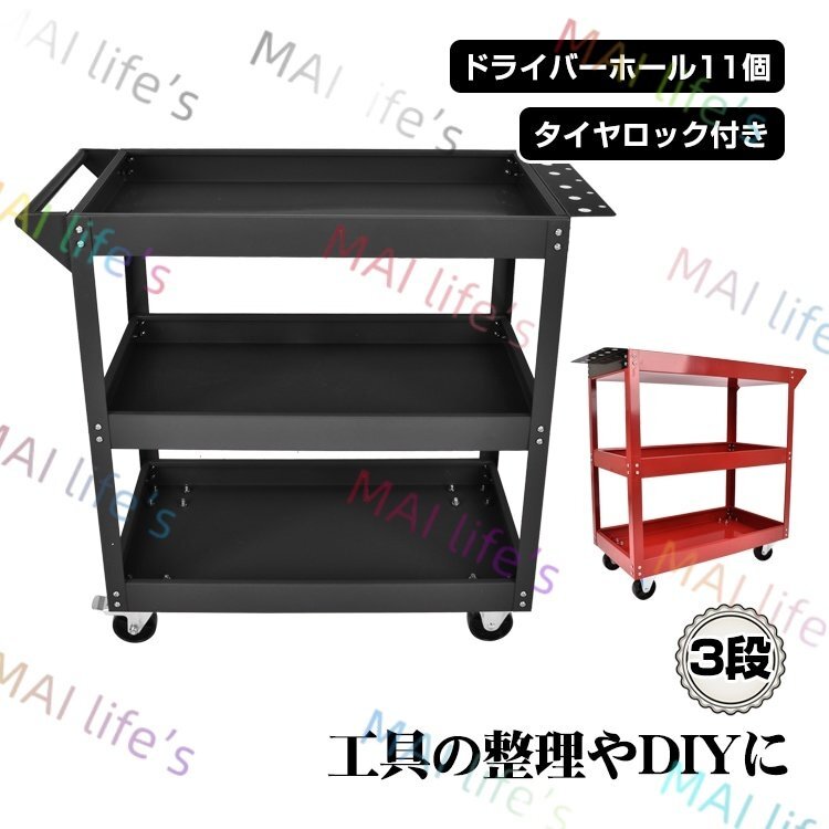ツールワゴン ツールカート 3段 工具台車 工具カート 工具収納 工具整理 ストッパー付きキャスター ドライバーホール付き
