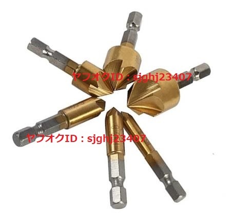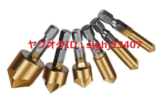 ▼バリ取り 面取りカッター 6~19mm 6本セット 六角軸 工具ドリルビット 電気ドリルキリ ホールソー コアドリル ツール 鉄工用ドリル刃