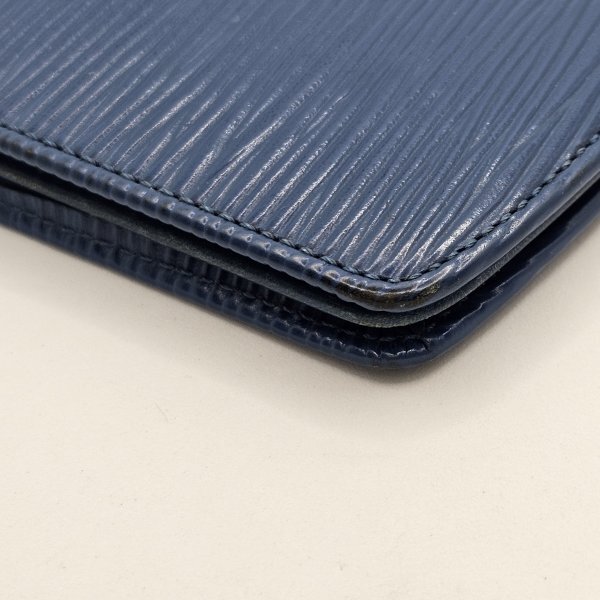 深いブルーの色合いと独特の型押しレザーが洗練された印象を与えます。