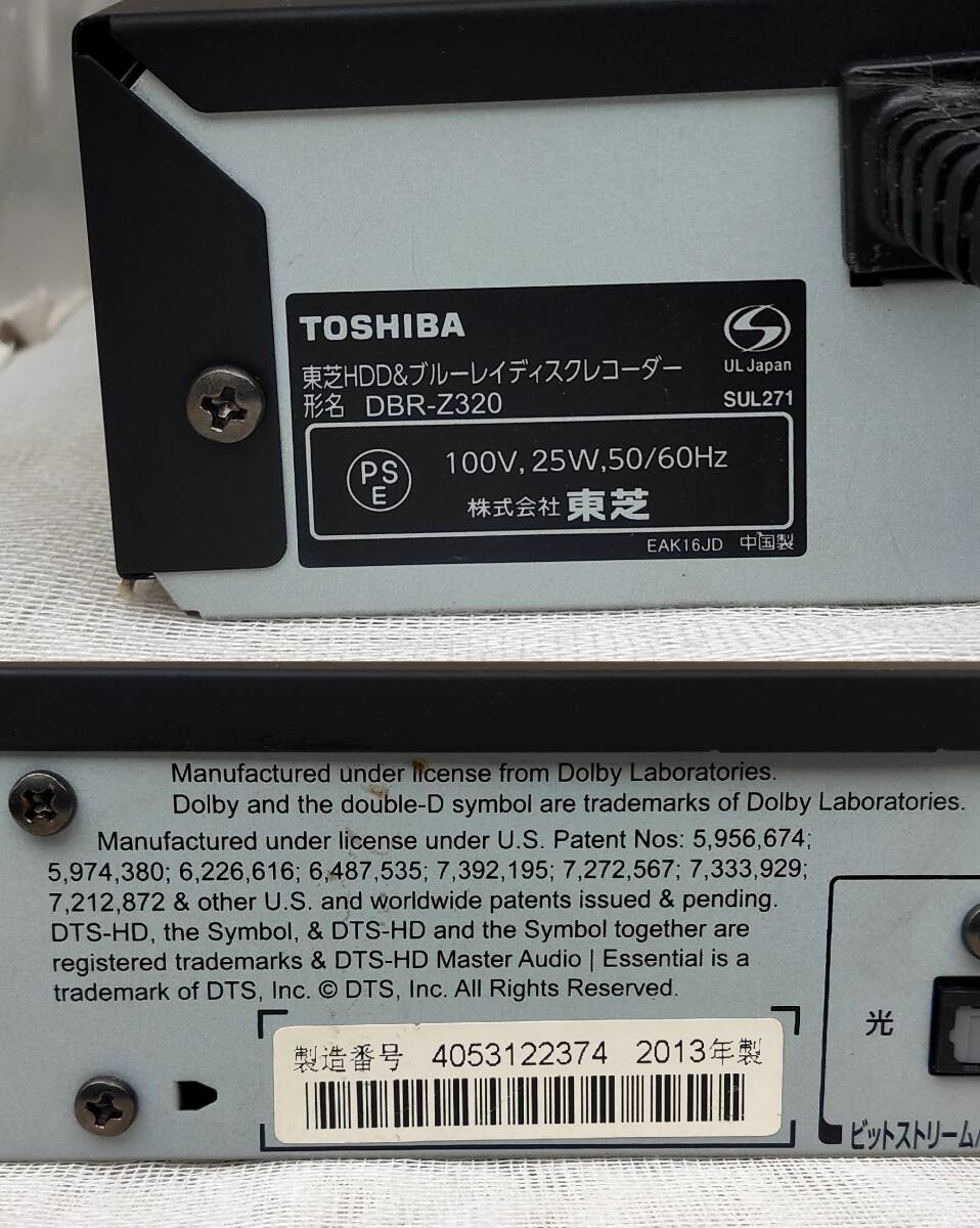 東芝 1TB 2チューナー ブルーレイレコーダー 『DBR-Z320』リモコン付き動作品です。