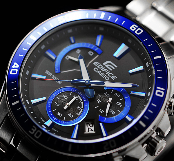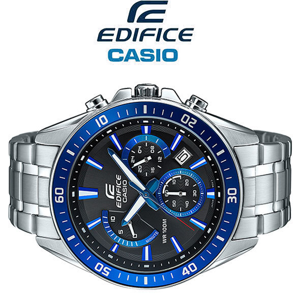 カシオEDIFICEエディフィス欧米モデル メタリックブルー 100m防水 クロノグラフ 腕時計 新品未使用 CASIO メンズ 本物