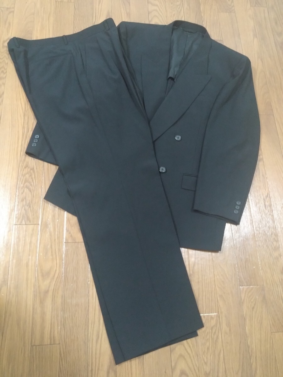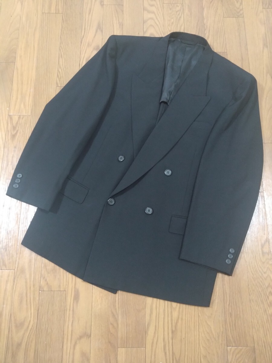 黒の無地のダブルスーツですので。冠婚葬祭向きです。