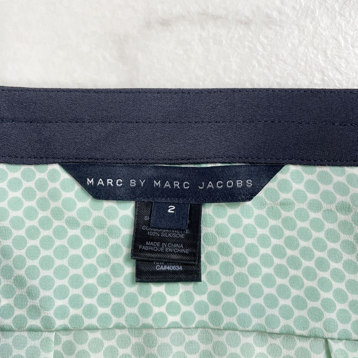 美品 Marc by Marc Jacobs マークバイマークジェイコブス ドット柄ブラウス トップス レディース ブラック ライトグリーン サイズ2*SC1637