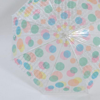 | シックな白猫のモノグラム柄に、シャボン玉のようなカラフルなドットをミックスさせたデザインです。持ち手は「猫のしっぽ」フォルムのgnoccoオリジナルです。すべりどめも付いた優れものです。傘骨にグラスファイバーを使用した、風にも強い構造です。 |