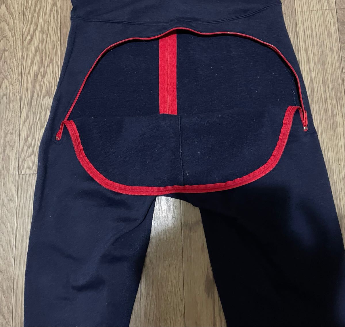 腰割れという、腰下部分に大きなチャックがあり(画像3.4.5参照して下さい)、着たまま脱がずにトイレも出来ます。