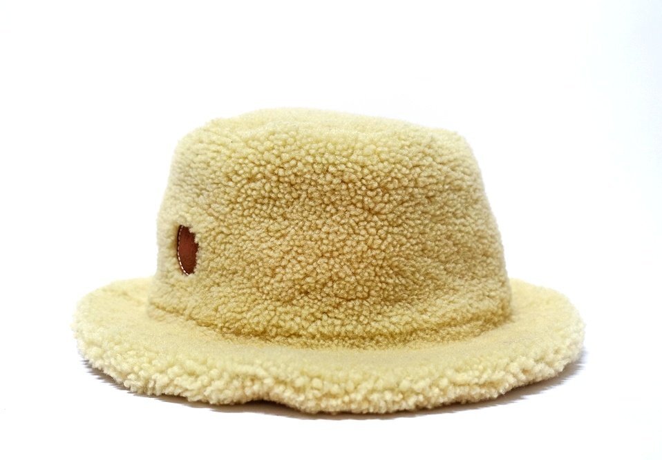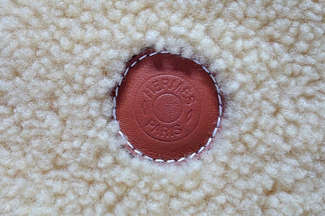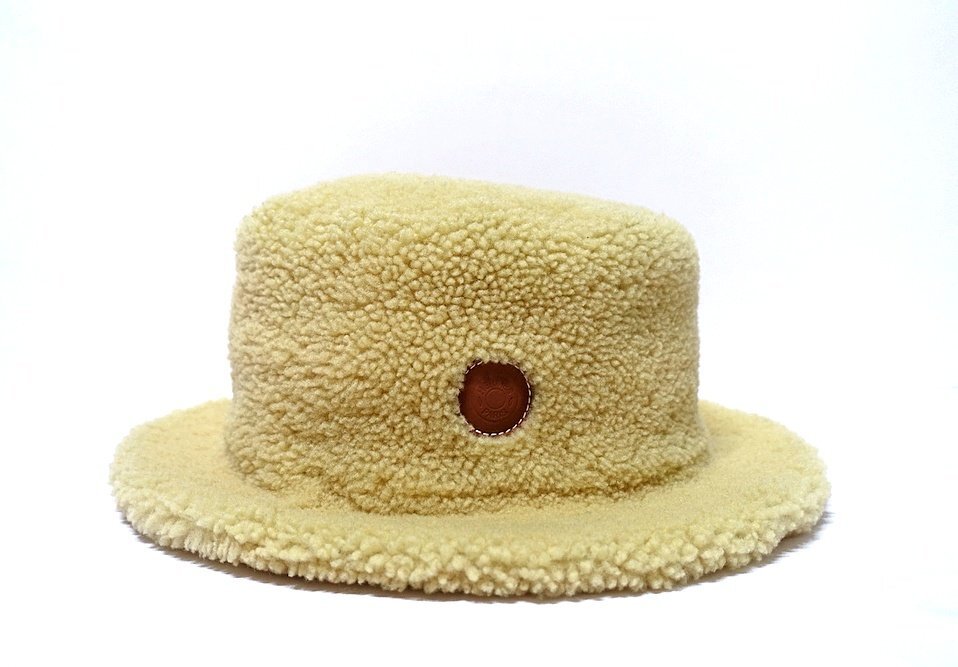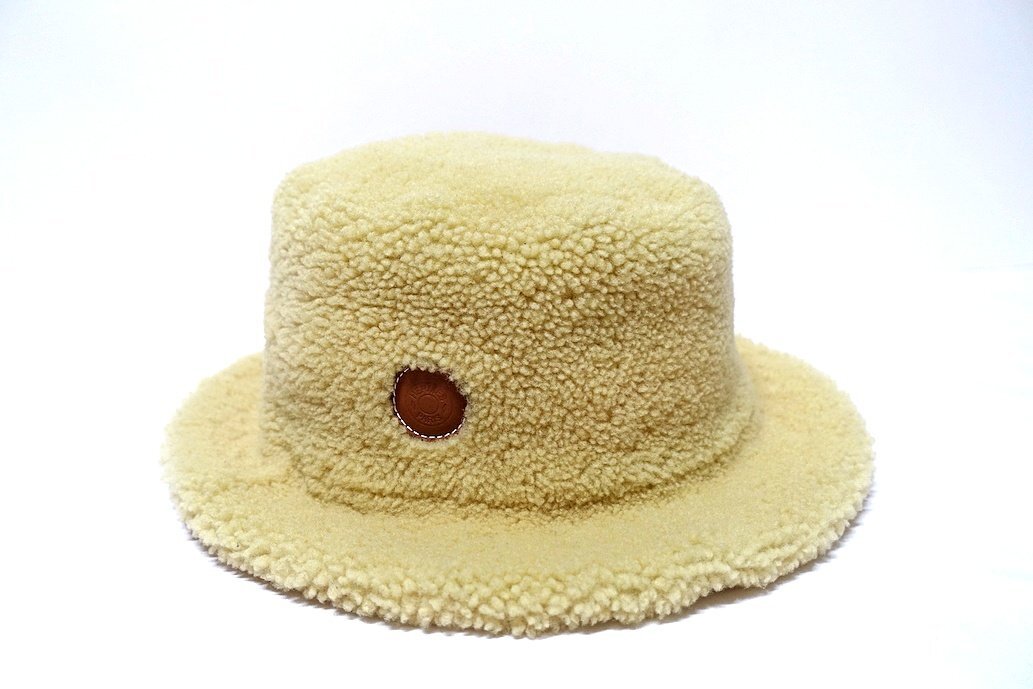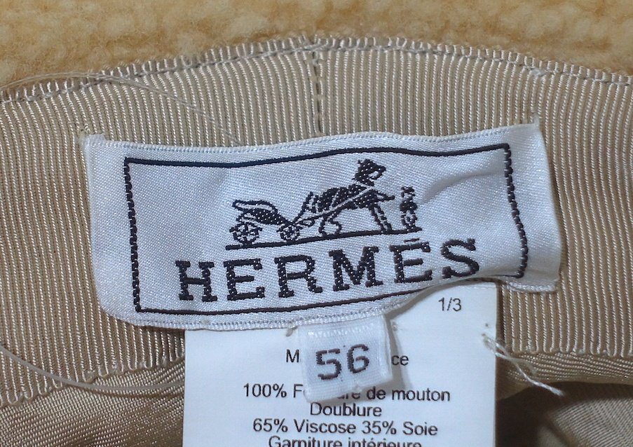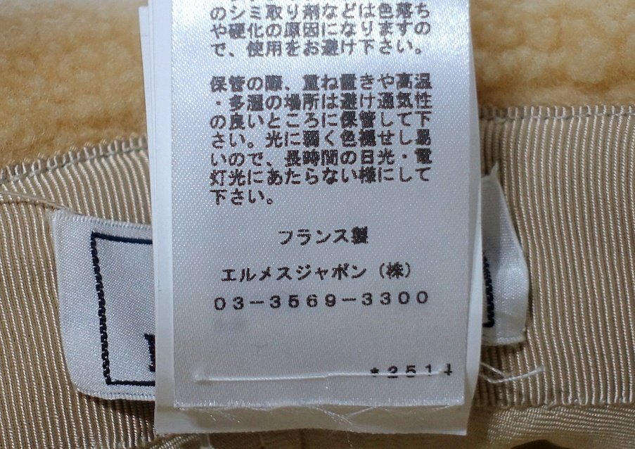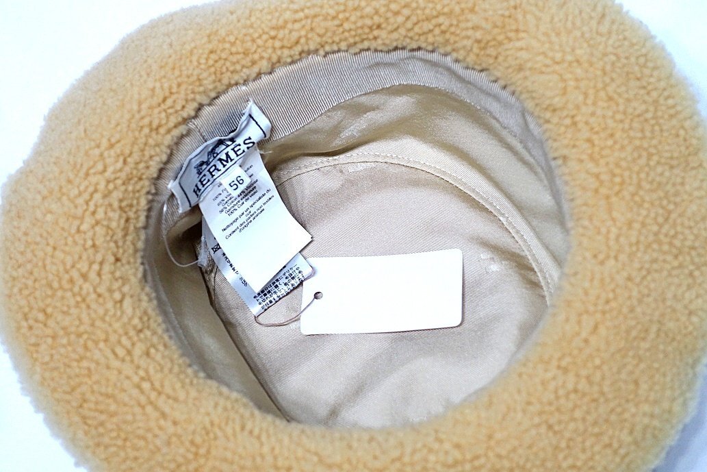 極美品 HERMES エルメス Fauve フォーヴ ムートン ハット クルードセル カーフレザーパッチ付 羊革 レディース 56 帽子