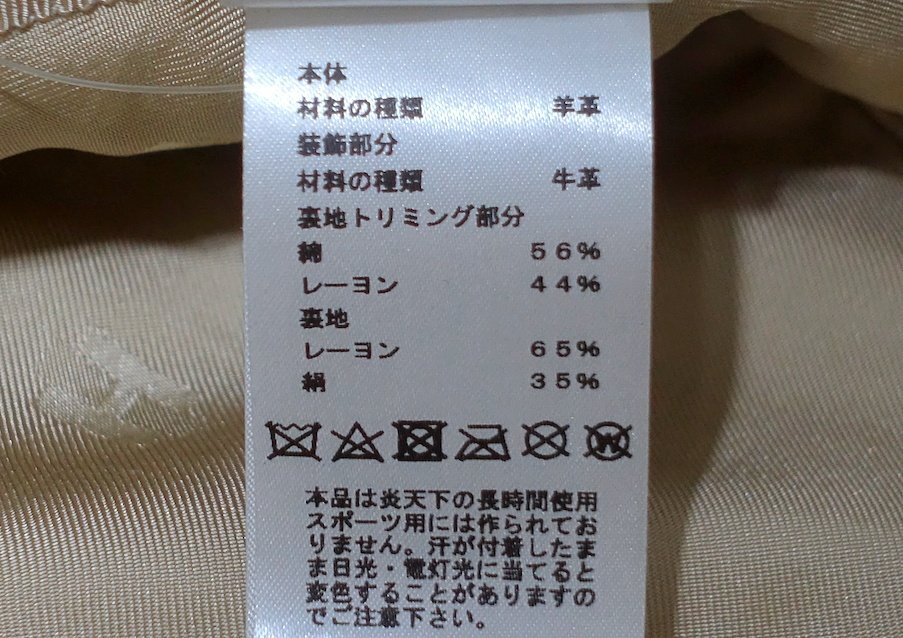 裏地のトリミング部分(綿56%、レーヨン44%)