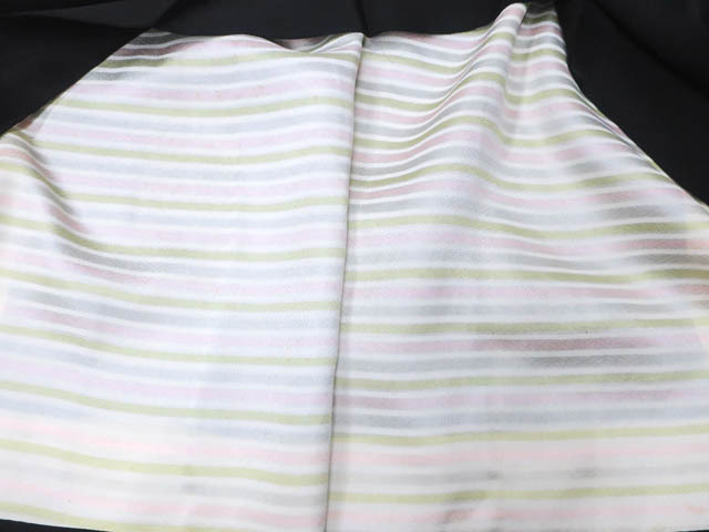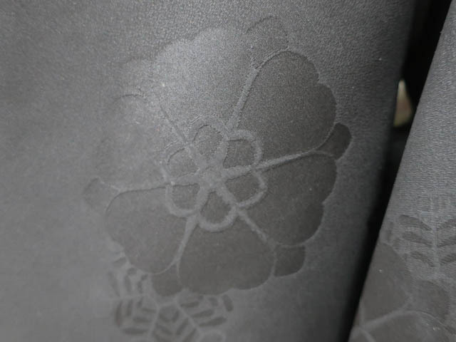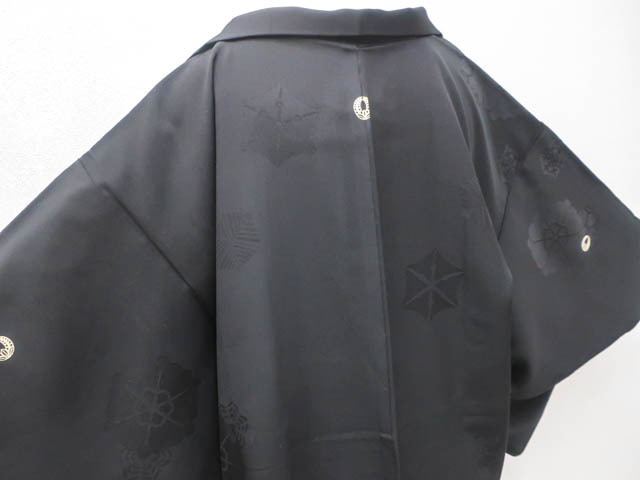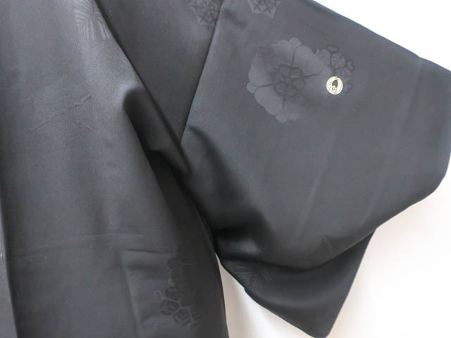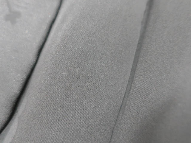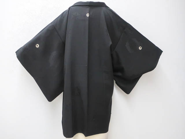 リサイクル商品のため、羽裏にシミ、表所々白い汚れがございますが着用可能なお品です。 地色は黒です。 1枚目の画像が近いお色かと思われます。 素材は正絹です。 |