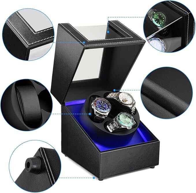 本巻きモーター:日本製マブチモーター(静音)素材:高級PUレザー(防水・耐汚加工)対応時計:男女兼用、自動巻き時計 セット内容:本体、電源ケーブル、取扱説明書