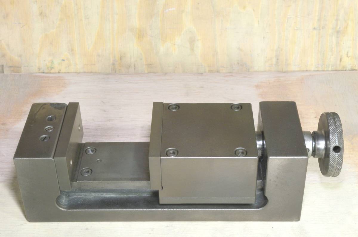 新品の頃の輝きに少しでも近づけるようにリペアさせていただいております。 口金周りに至りましては、画像を含めて事細かく説明報告致します。 現行型の治具ボーラ用超精密マシンバイスVPシリーズの前モデルの製品かと思われまして、現行型とはかなり形状が異なります。 中古機器販売等で精密バイスとして販売されておりまして、特徴としましては、摺動面に重ねて鋼材が取り付けてあり精度を意識したものと思われます。 説明画像2番目上、エンドミル痕が1発見られ口金の台座部に2mm程かすってましたので、金属パテにて補修しております。 摘みハンドル開閉の際、密着状態から全開迄スムーズ開閉作動します。 口金の摺合せは、口金同士を摺合せ密着状態の際隙間は見られません。 口金面は、目立つ様な傷も無く綺麗な方だとは思います。 工具箱にスタイロホームくり抜き簡易的ではありますが、専用ケース・増し締め用12mmスパナが付属します。 分解清掃後、調整等を行っております。 製品情報 津田駒工業 80-VP スペックは、すべて実測 口巾:80mm 口開:71mm 口深:40mm 長さ:290mm 高さ:80mm 横幅:82mm 摘みハンドル径:60mm 製品重量:9kg 出品商品を商品説明・写真にてご判断していただきまして、御入札の方宜しくお願い申し上げます。 |