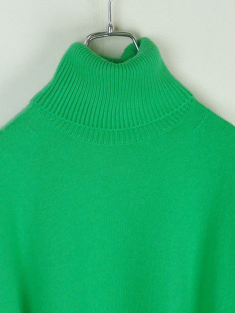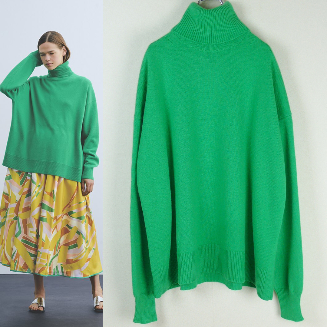 BLAMINK ブラミンク 21SS カシミヤ7G タートル ワイドニット36 ケリーグリーン Drawer タートルネックニット カシミヤ100%