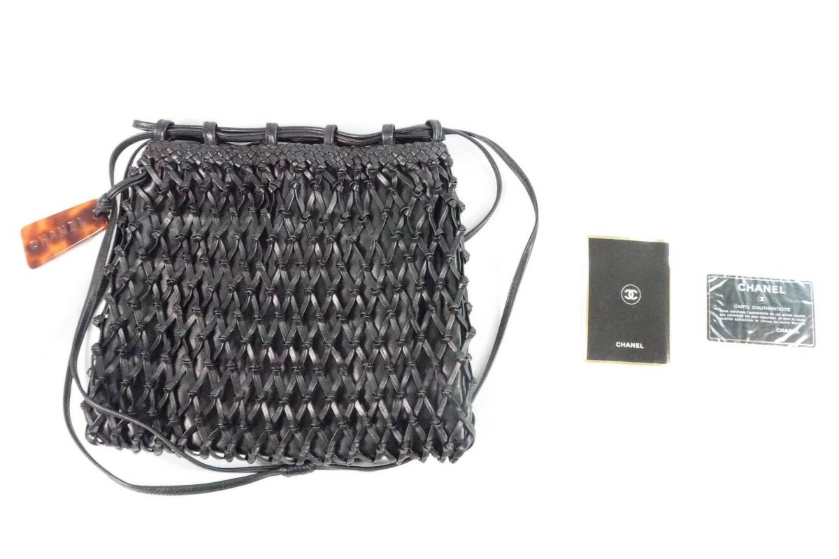 CHANEL シャネル 編み込み ショルダーバッグ レザー 巾着 ブラック系 ブランドバッグ | |||