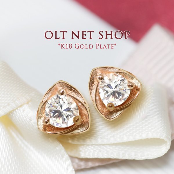 550円スタート/新品/ピアス/K18GP/レディース/ハート/三角/トライアングル/おしゃれ/きれいめ/18金/ピンクゴールド/ダイヤ/CZ/プレゼント