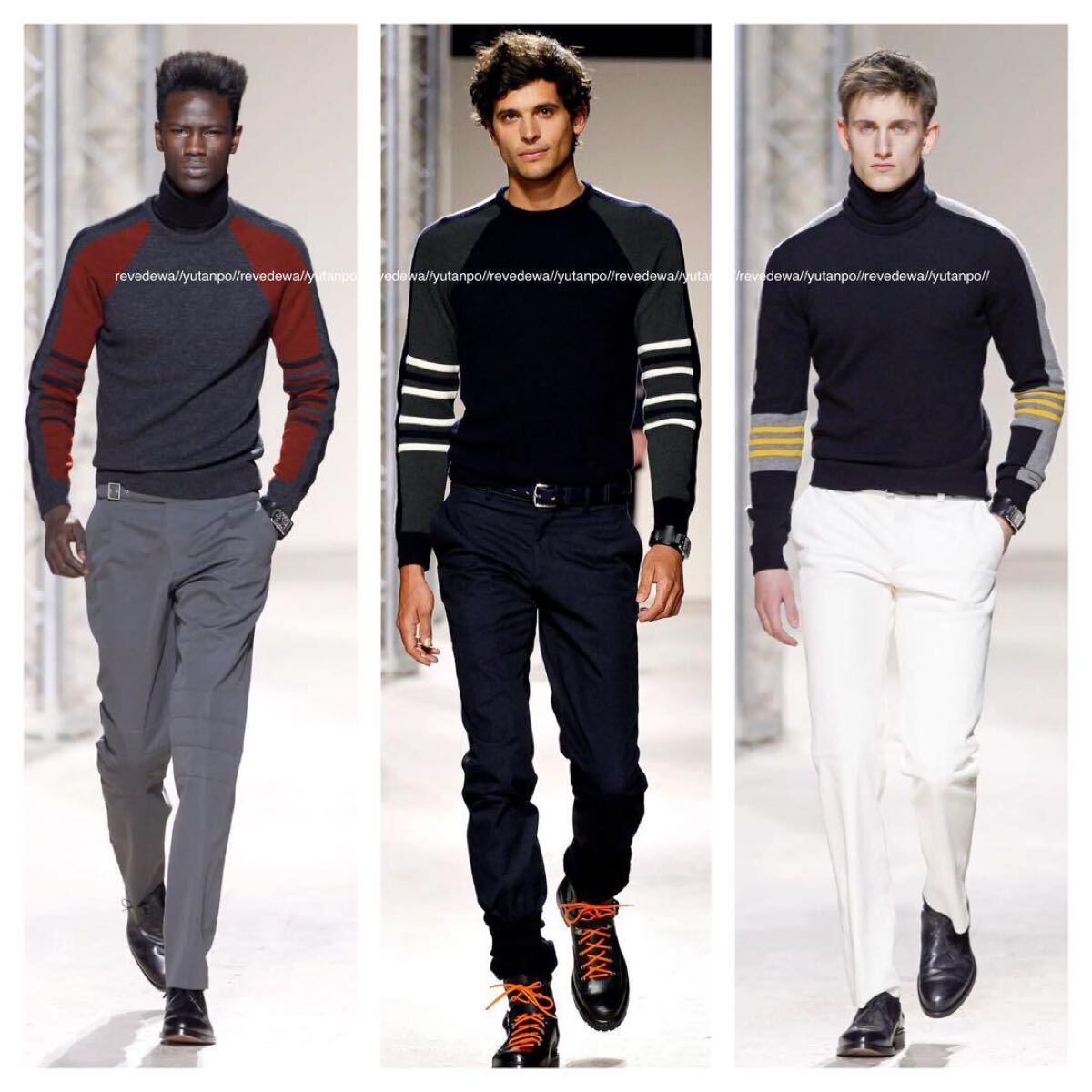 ○本物 美品 ランウェイ エルメス 配色切替 ボーダー セーター L マルチカラー HERMES ストライプ 長袖 メンズ コレクションモデル