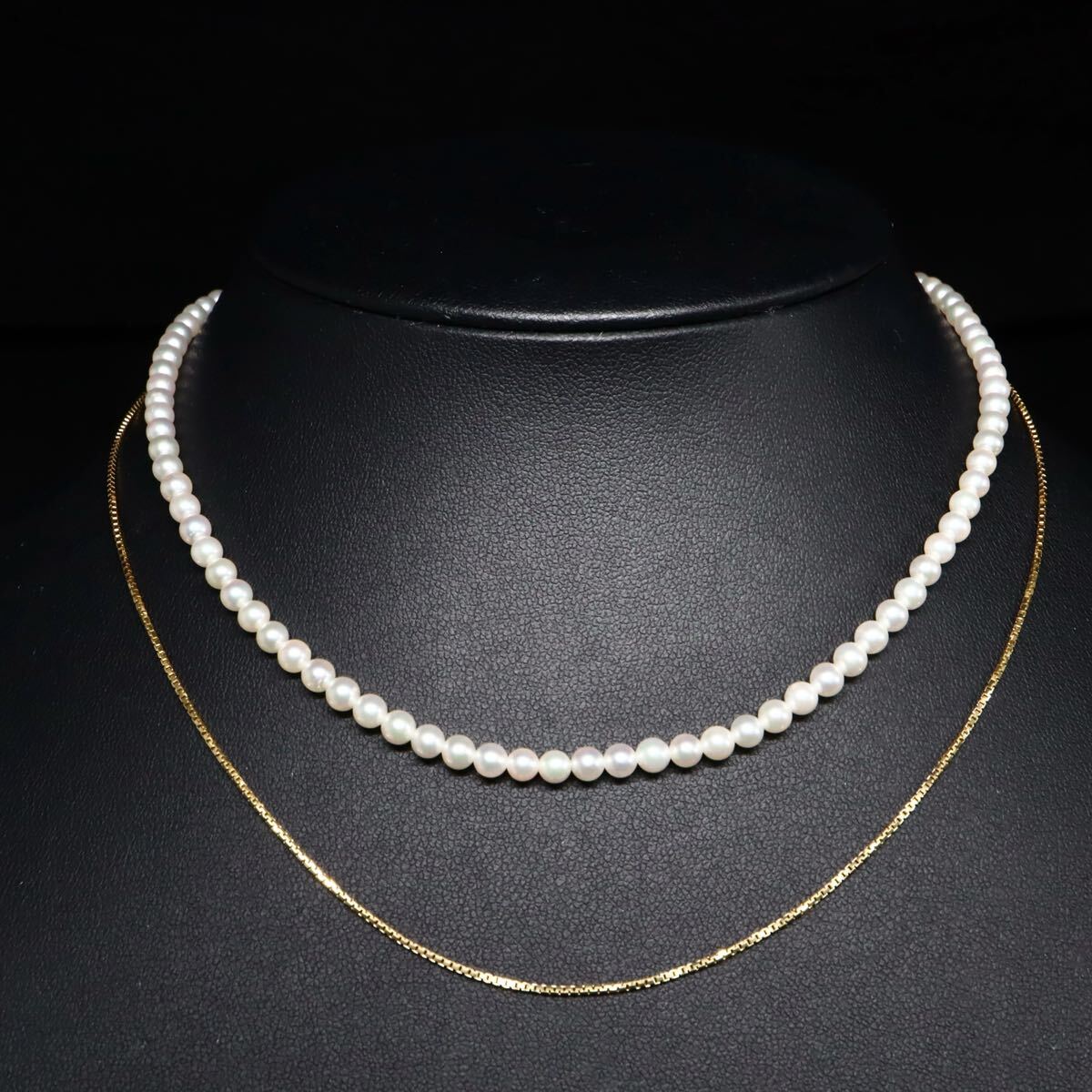〈アコヤ本真珠ベビーパールネックレス&チェーンネックレスおまとめ〉