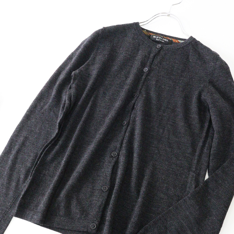ブラックレーベル ポールスミス Paul Smith Black Label ウール100 ハイゲージニットクルーカーディガン M 濃グレー┃【2400014629194】