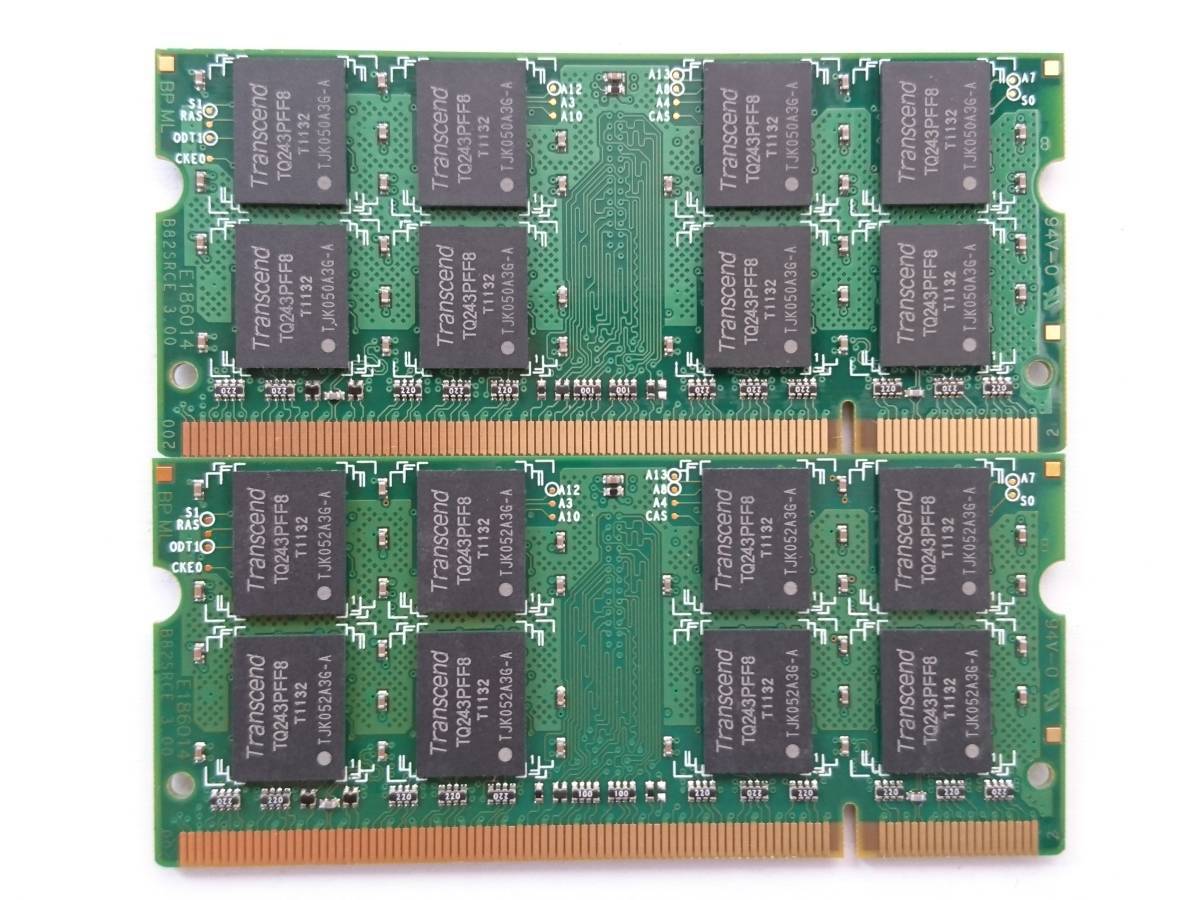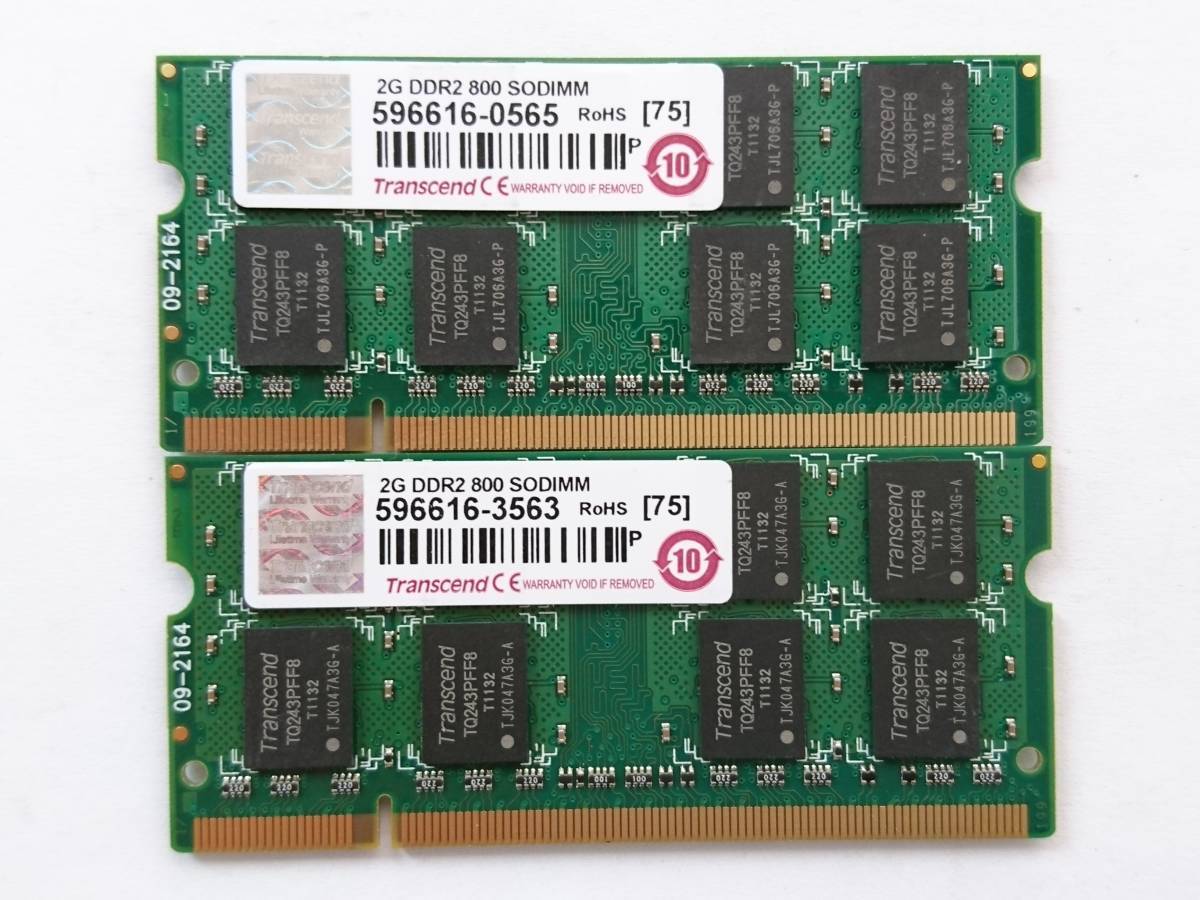 ■中古品★Transcend メモリ 2G DDR2 800 SODIMM★2G×2枚 計4GB