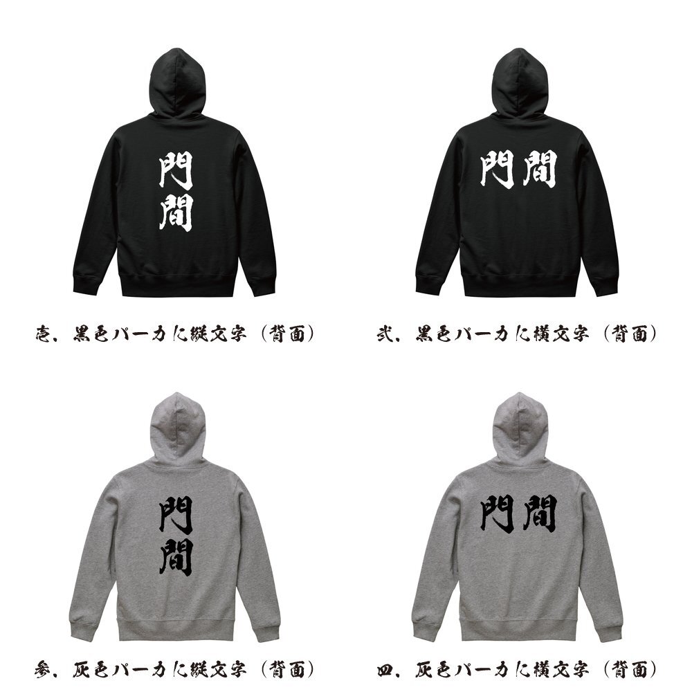 門間 オリジナル パーカ 書道家が書く プリント フルジップ パーカー S M L XL XXL 110 130 150 【 名字 】