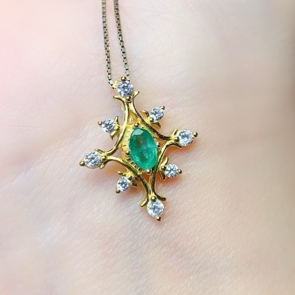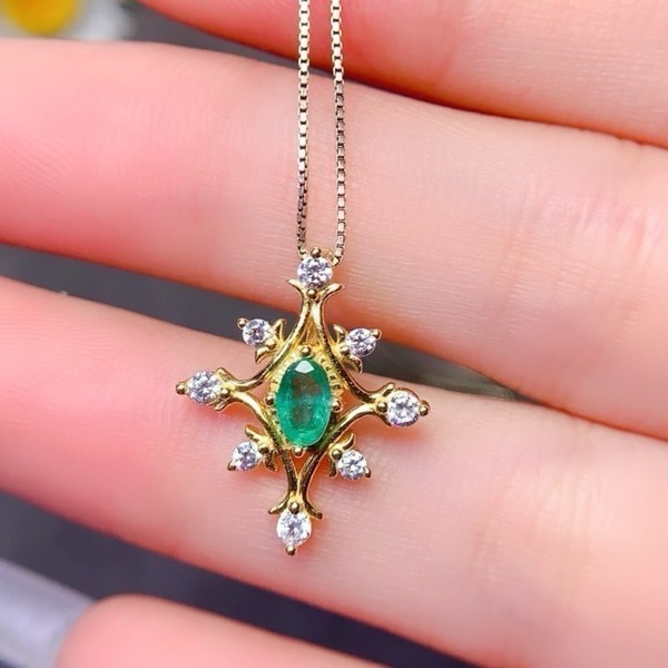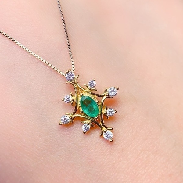 天然エメラルドS925純銀ペンダント 女性向けの豪華なジュエリー ファッションギフトに最適