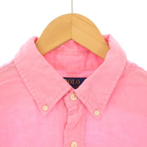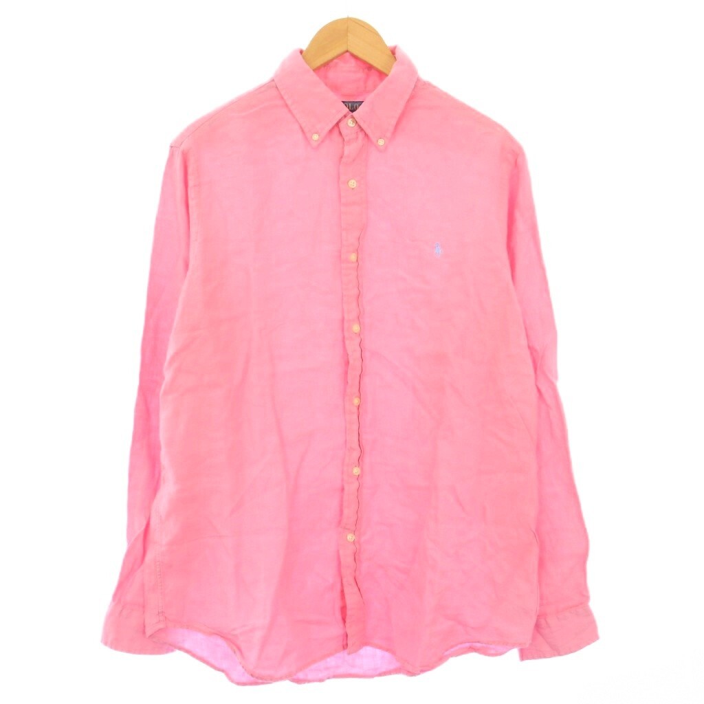 ポロ ラルフローレン POLO RALPH LAUREN CLASSIC FIT ボタンダウンシャツ カジュアル 長袖 レギュラーカラー ロゴ 麻 リネン L ピンク