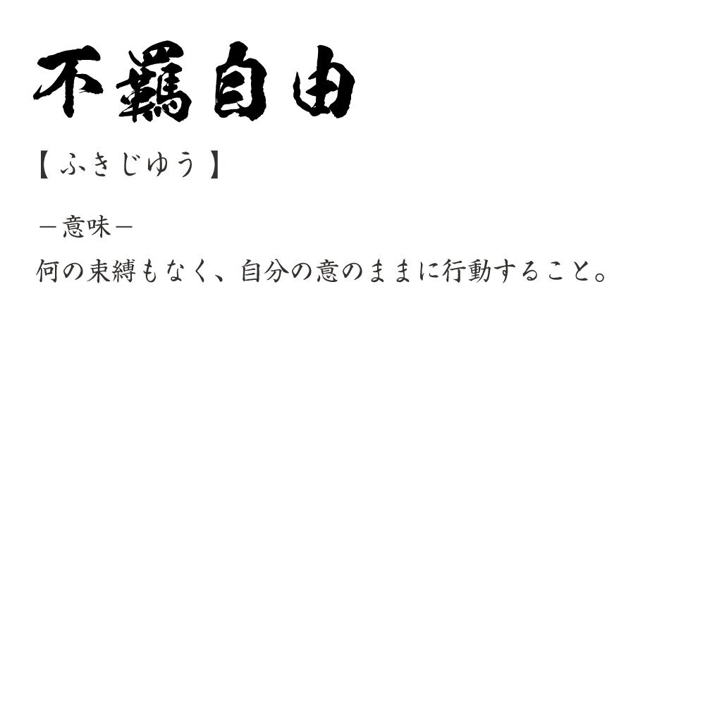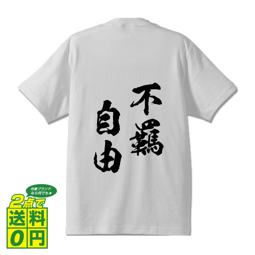 不羈自由 (ふきじゆう) 書道家が書く プリント Tシャツ S M L XL XXL 120 130 140 150 G-S G-M G-L 【 四字熟語 】
