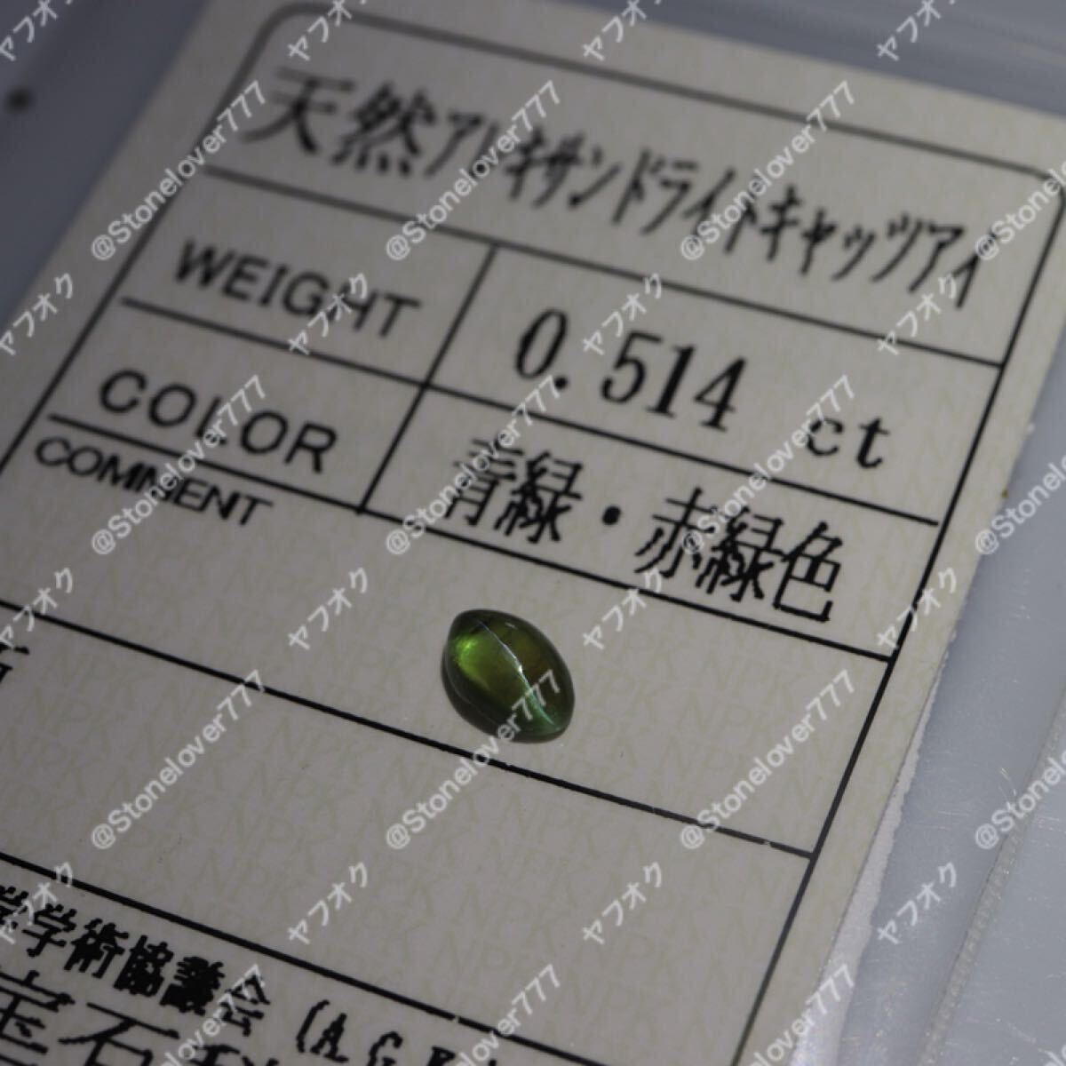 種類: 天然アレキサンドライトキャッツアイ0.514ct ソーティング付き