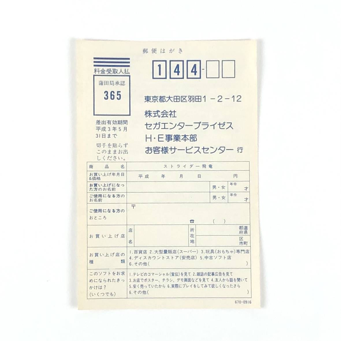 ■ 出品商品はメガドライブ用ソフト「【送料無料】 ストライダー飛竜 箱説・ハガキ付き 痛みあり」になります。