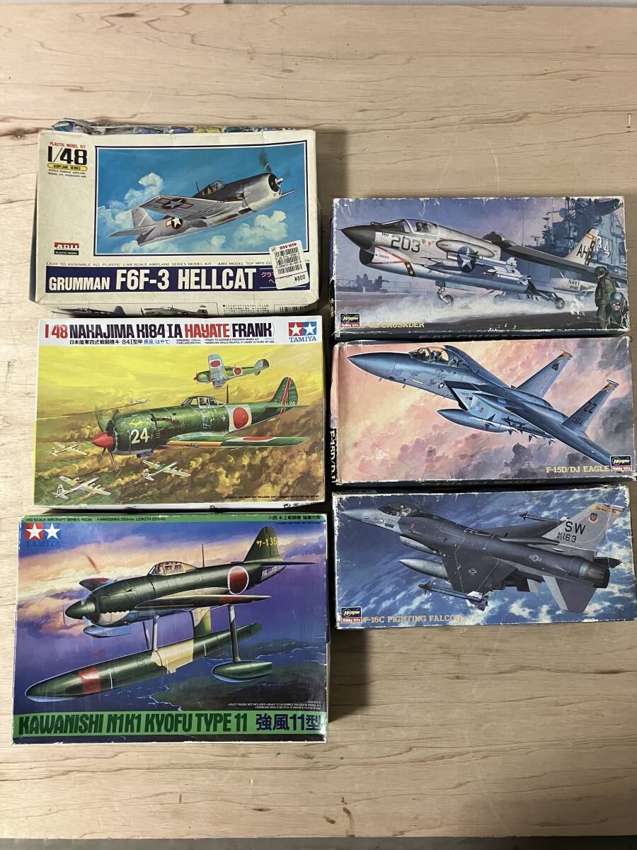 KZ433 未組立 未組立 タミヤ 1/48 強風11型 疾風 ハセガワ 1/72 F-16C F-15D F-8E 他 戦闘機 6個 まとめ プラモデル TAMIYA Hasegawa