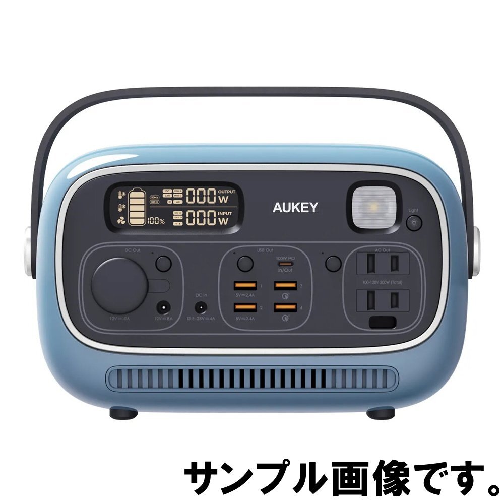 即決 新品 AUKEY PowerSTUDIO300 ポータブル電源 PS-RE03 ブルー 容量297Wh 最大出力合計400W AC/DC/USBポート LEDライト付 オーキー