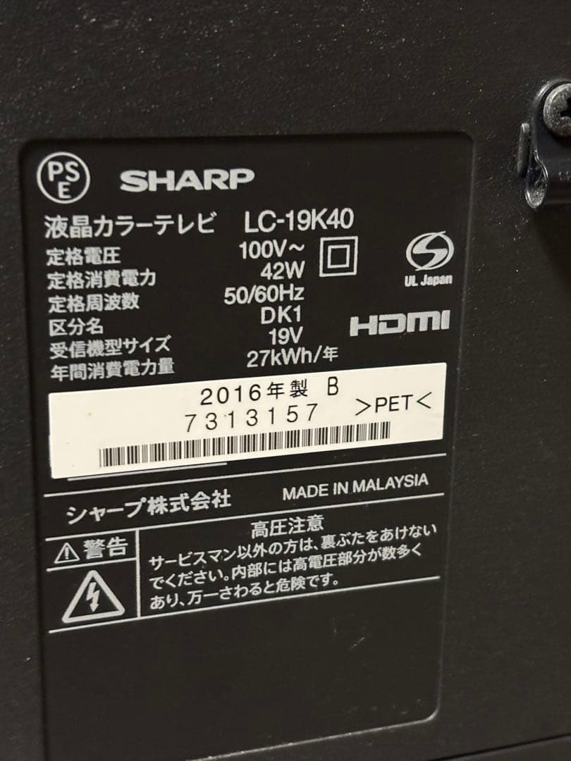 シャープ 19V型 AQUOS ハイビジョン 液晶テレビ 外付HDD対応(裏番組録画) ブラック LC-19K40-B