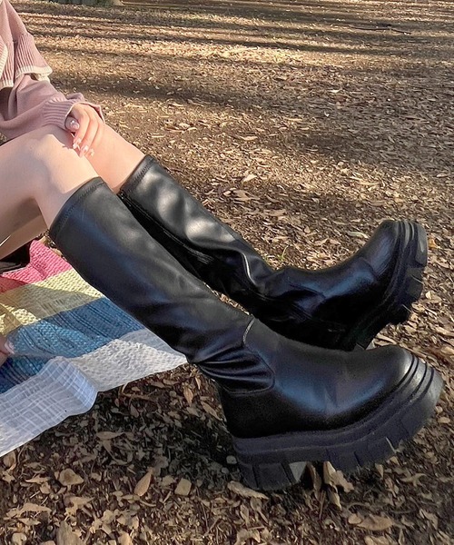 キーワード:ブーツ レディース ヒール プレーントゥ ロング 厚底 秋 冬