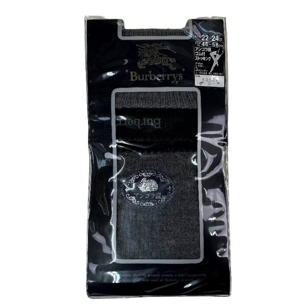 バーバリー ニーソックス ハイソックス オーバーニ グレー アンゴラ混 約22~24cm ゴム付き ロングソックス 日本製 冷え防止 送料無料