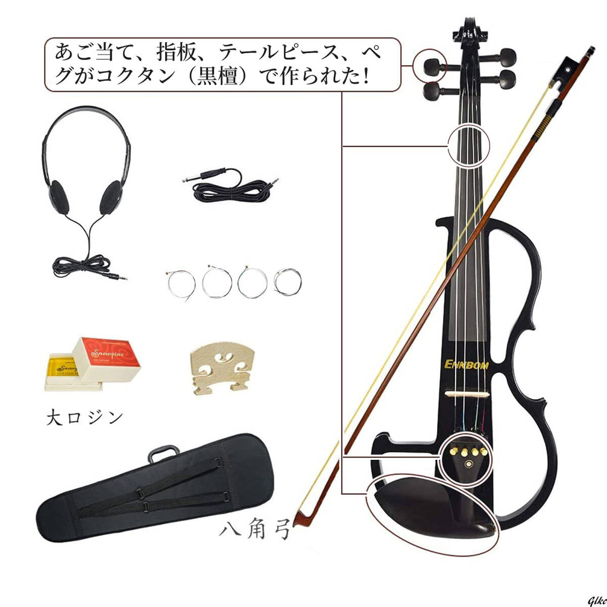 【自宅で静かに練習できるサイレント仕様】 エレキヴァイオリン 入門用 初心者セット 自宅練習向け フルサイズ 黒檀製 キラキラブラック