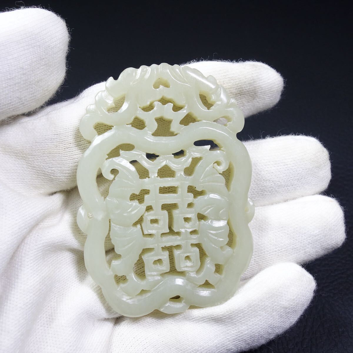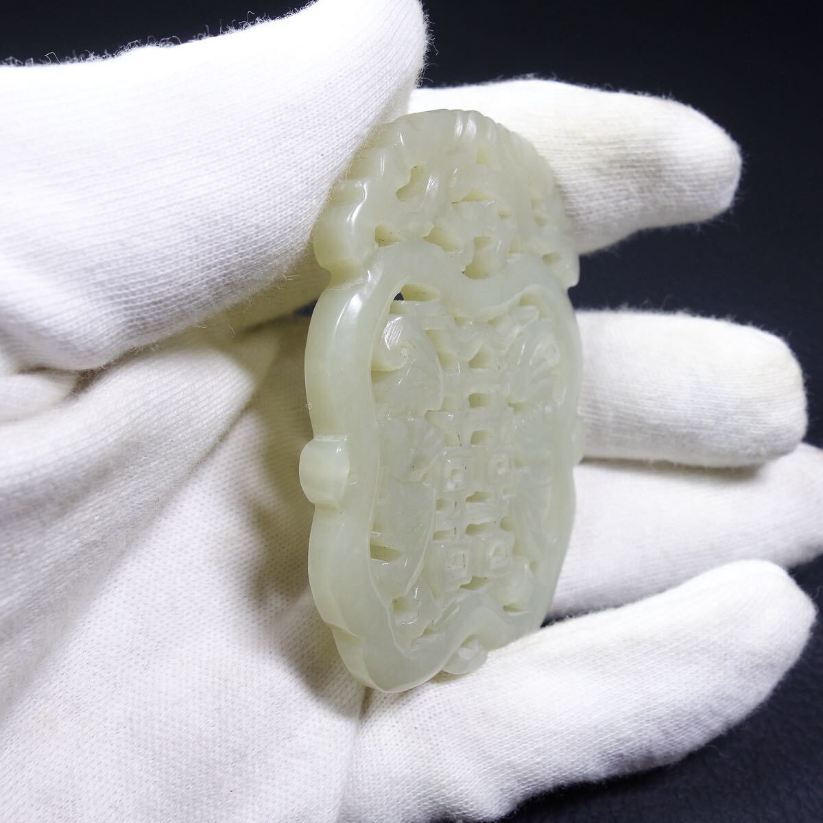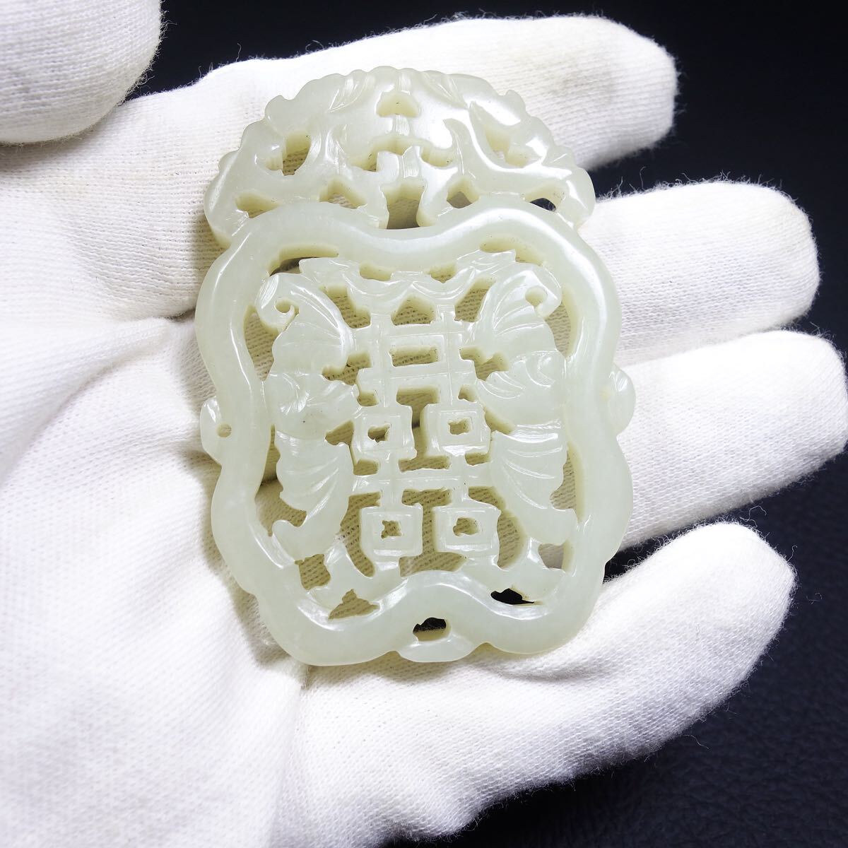 喜喜(きき)天然石 G老玉和田玉 清時代古玉中国古美術骨董 玉彫 根付 清代手彫 透かし彫 掛物