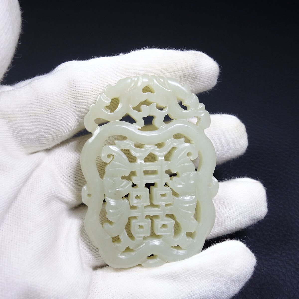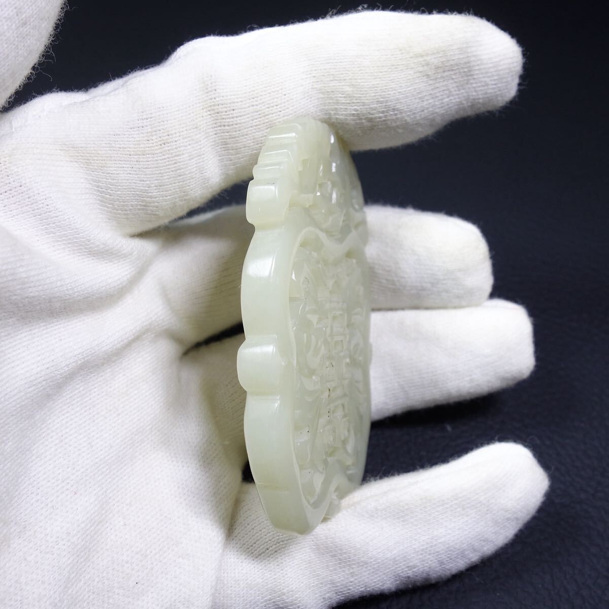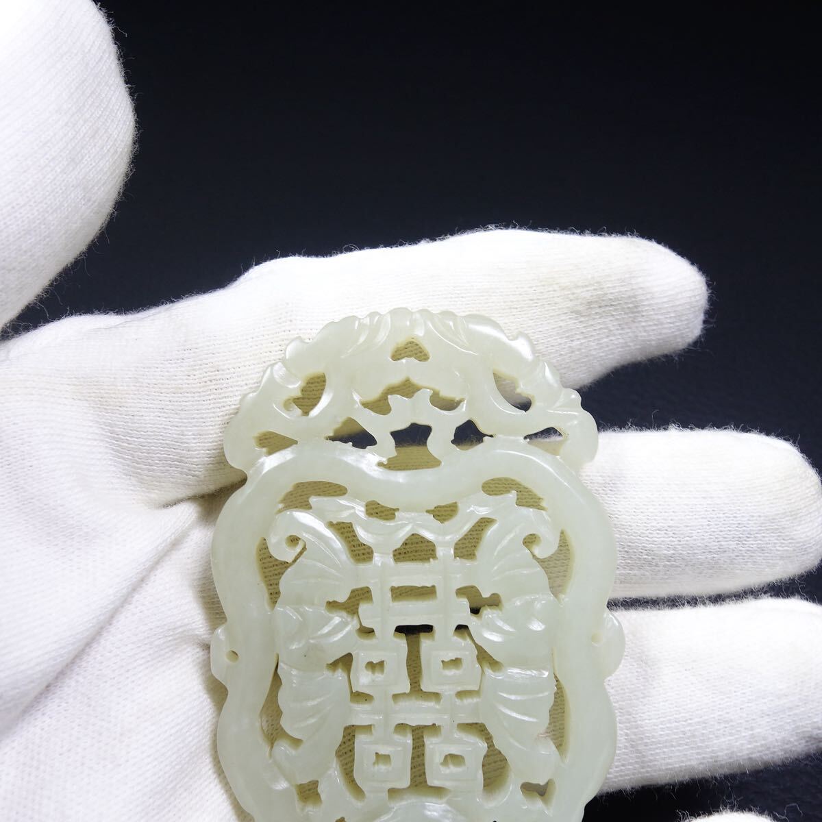 喜喜(きき)天然石 G老玉和田玉 清時代古玉中国古美術骨董 玉彫 根付 清代手彫 透かし彫 掛物