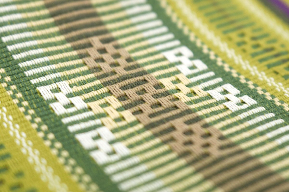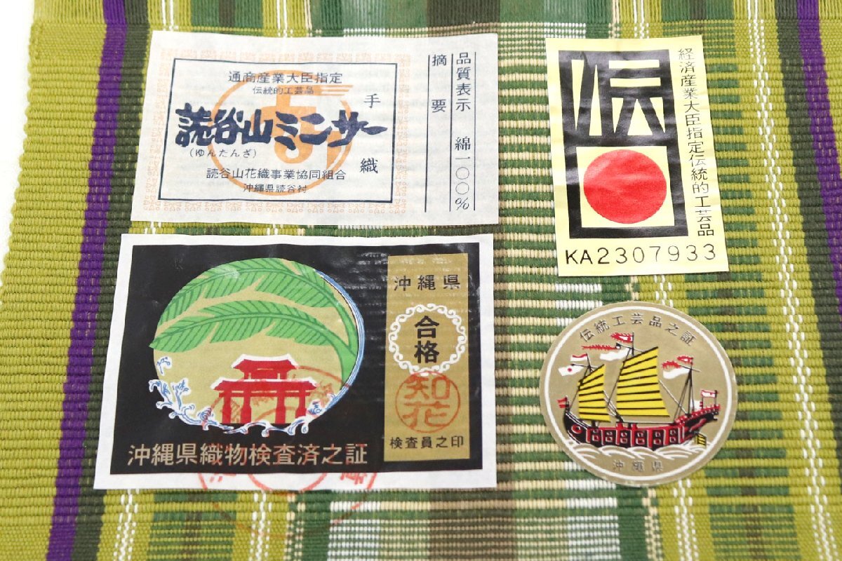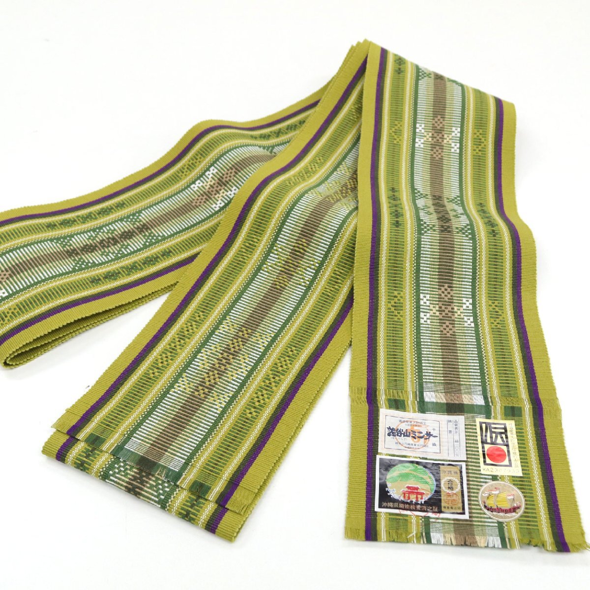 和遊館 OHK093 沖縄県 読谷山 ゆんたんざ ミンサー 手織 四寸帯 半幅帯 綿100% |