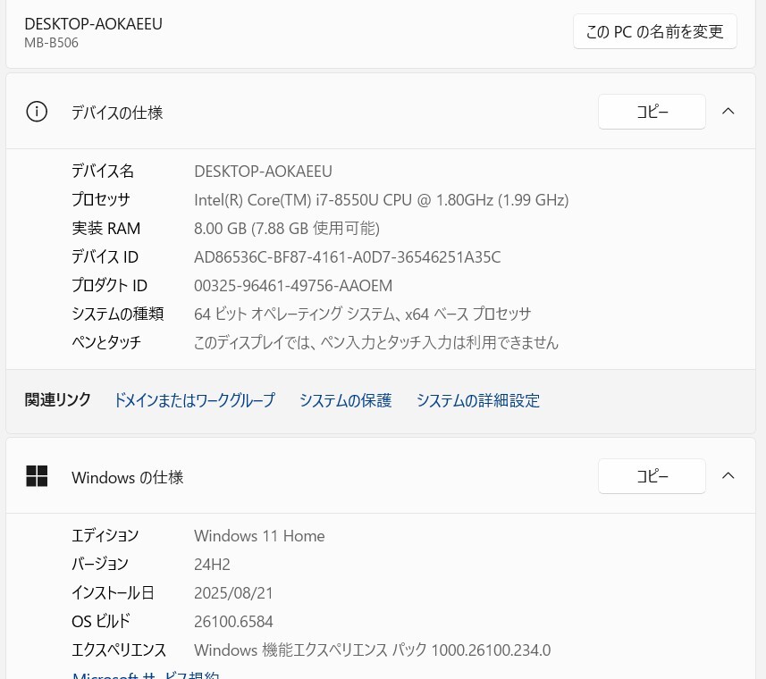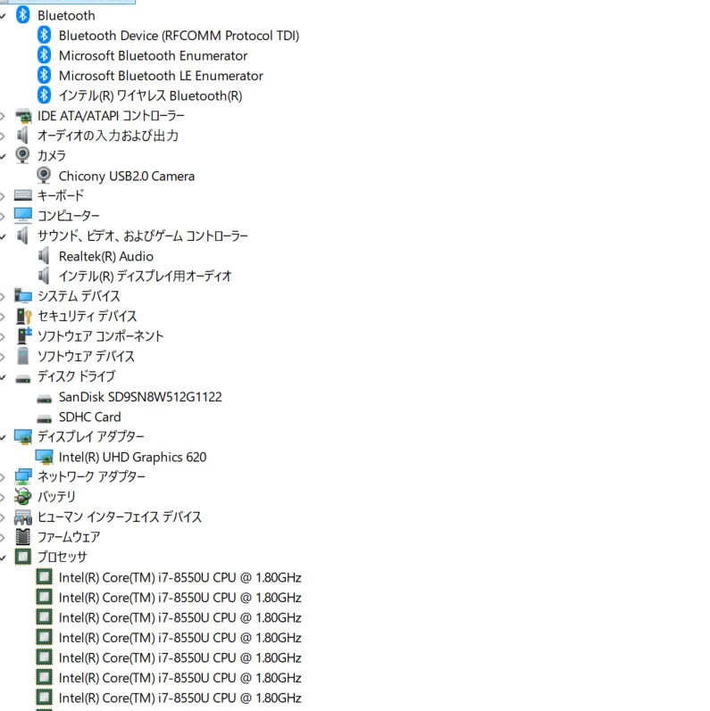 ■CPU:インテルcore i7-8550U (@1.80GHz)