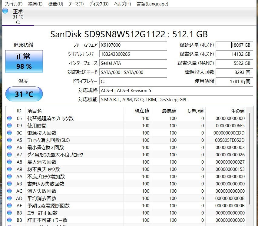 バッテリ-94%で、残り使用時間 3時間30分と表示されます。正確に確認したわけではなく、消耗品のため、動作補償外となります。
