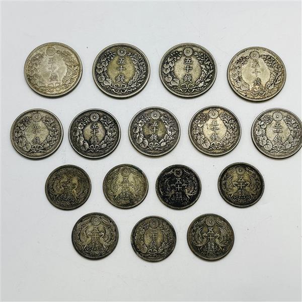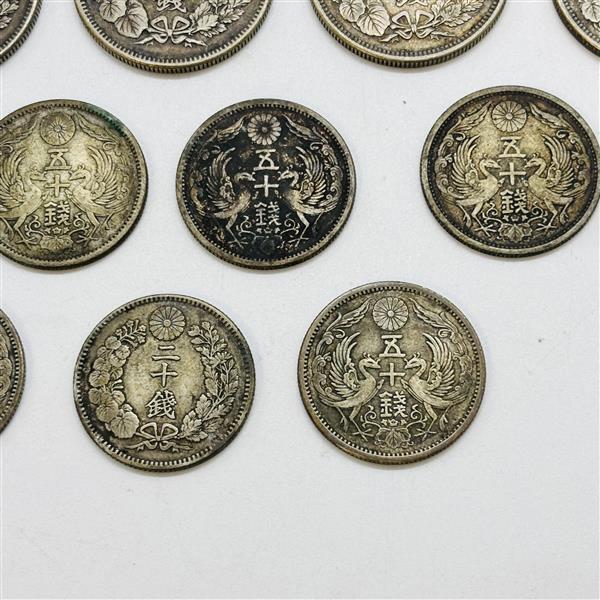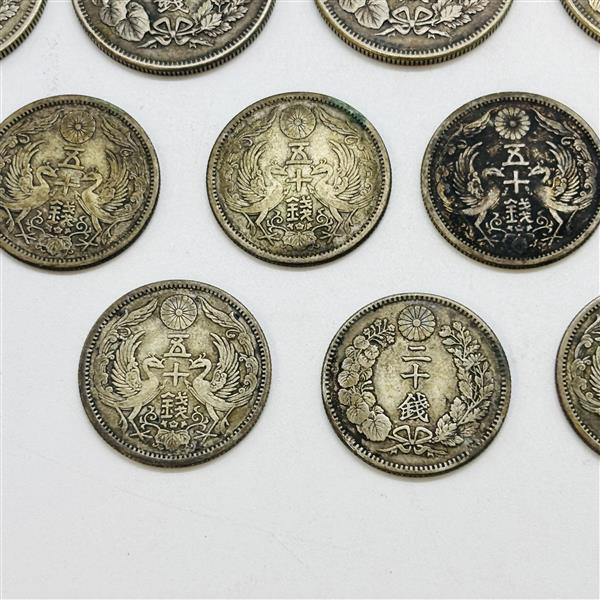 | 50銭銀貨 20銭銀貨 50銭 20銭 旭日50銭銀貨 中丸50銭銀貨 竜50銭銀貨 銀貨 古銭 アンティーク コイン 昭和 古銭まとめ まとめ出品 1円 16枚 | ||