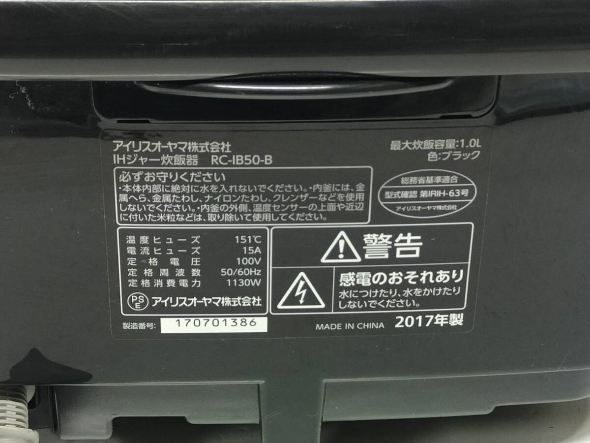 IRIS OHYAMA アイリスオーヤマ IH炊飯器 5.5合炊き 銘柄炊き 極厚火釜 ブラック RC-IB50-B 2017年製 ブラック 動作確認済み品