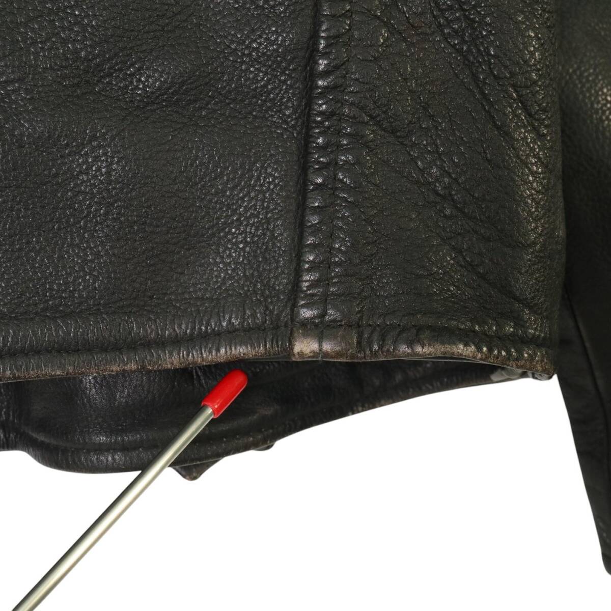 | 【商品管理番号】 A3560 【サイズ】 XL 【実寸サイズ】 肩幅:約52cm 着丈:約61cm 身幅:約55cm 袖丈:約62cm 【主な素材】 表地 : レザー 裏地 : 13897 【色】 ブラック 【仕様】 90年代 ダブルライダースジャケット 【状態】 特記事項: 全体的に使用感がございます。着用に問題はございません。 | |||