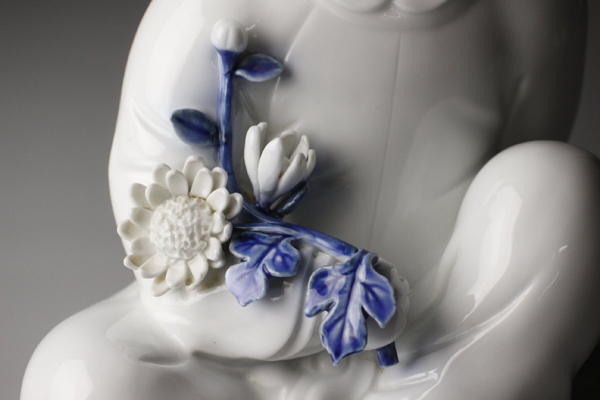 * * * 商品詳細 * * * ここでしか出逢うことのできない唯一の美をご紹介させて頂きます。 美しい透明感のある淡い白、ほんのりと色付く爽やかな青が詩的な 十三代酒井田柿右衛門による作品です。 抑えられた色彩でありながら多彩な色味を感じさせ、 陰影が造り出す立体感は柔らかく儚い印象を受けます。 造りは実に細密で細やかな髪の流れも丁寧に表現されており、 手に持つ菊花は素晴らしい造形美で高い技術力も伺えます。 辺りの空気感までもが造り込まれた情感溢れる様は正に人間国宝の成せる技。 思わず目を奪われる優雅な逸品をこの機会に是非お手元にてご堪能下さい。 十三代柿右衛門(1906~1982) 酒井田柿右衛門は 江戸時代から肥前国有田の陶芸家の子孫(後継者)が襲名する名称。 柿右衛門様式は花鳥図などの題材が暖色系の色彩で描かれ、乳白色の余白と豊かな構図が特徴。 有田の酒井田柿右衛門が考案した濁手(にごしで)と呼ばれる 乳白色の地色の製作技術は18世紀末に断絶してしまったが、 大正・昭和期にこれを復活させたのが十三代柿右衛門である。 この功績により1971年に重要無形文化財保持者(人間国宝)となっている。 ■サイズ/横18cm×高20cm×奥行13㎝ ■状態/スレ、小キズ、汚れがございます。 ※写真にてご確認、ご了承の上ご入札ください。 ![]() Yahoo!かんたん決済 * * * 発送詳細 * * * 入金確認後3営業日以内に発送致します。 ※直接引き取りも可能です。 60~160サイズにつきましては 佐川急便、ゆうパックのどちらかで発送いたします。 ゆうパック発送の場合、弊社の発送日から追跡サービスに問合せ番号が反映されるまで 約1日ほどお時間がかかりますのでご了承下さい。 * * * 注意事項 * * * 運送中の破損があった場合は速やかに当社までご連絡下さい。 保険を利用するのに受取連絡後に運送会社による現場での破損状況確認が必要となります。 勝手に返送されますと保険の適用外となりますのでご注意ください。 * * * * * * お問い合わせ:082-236-8669 |