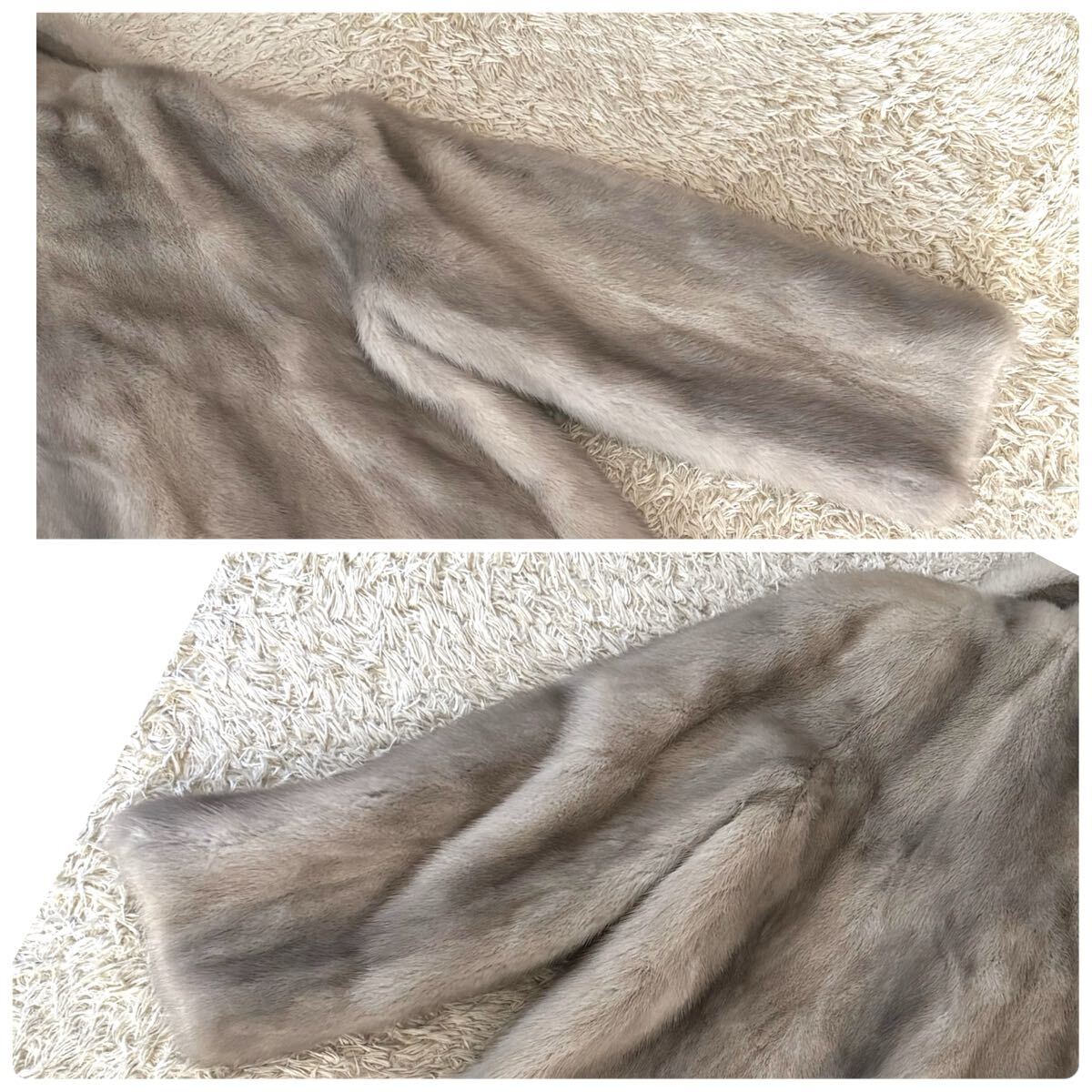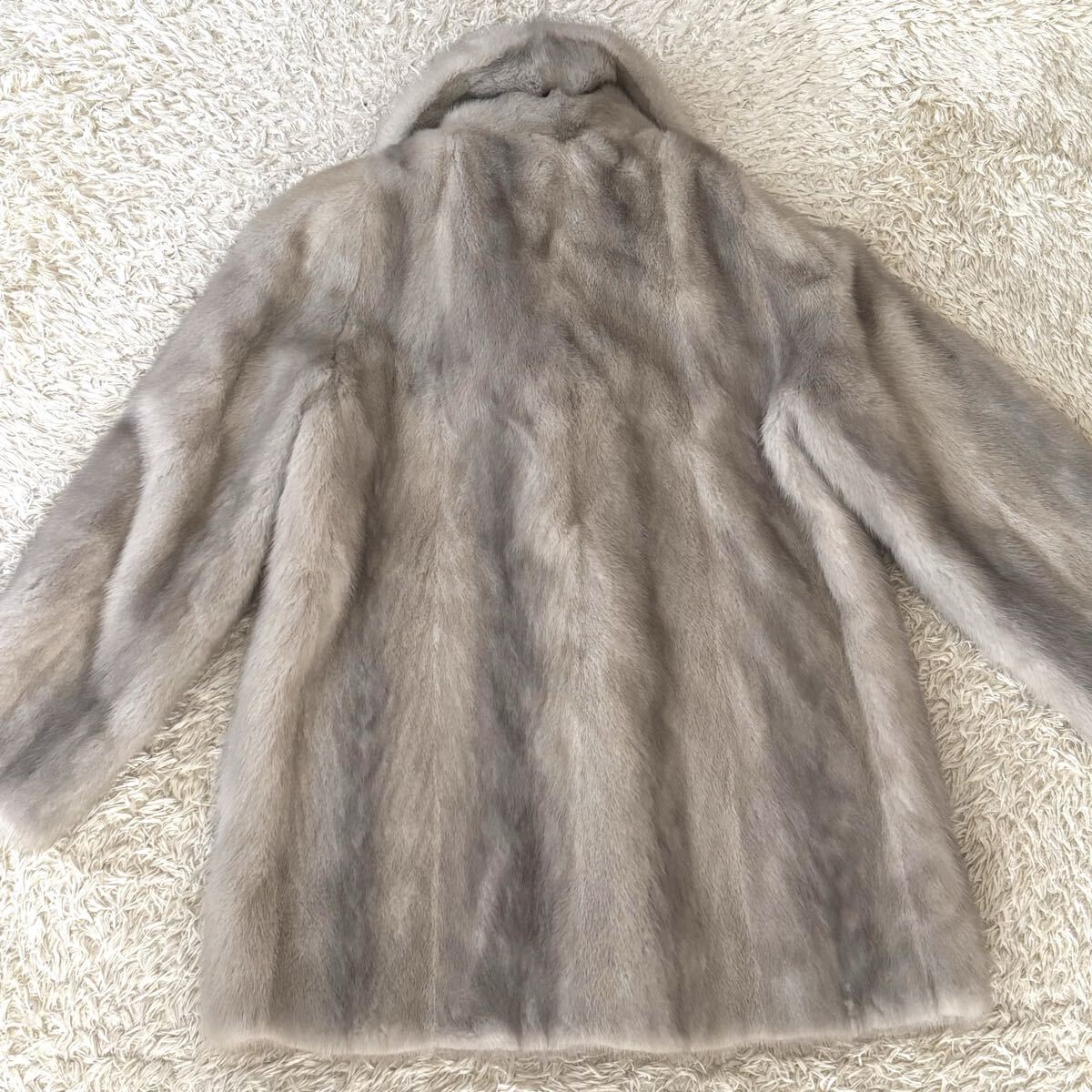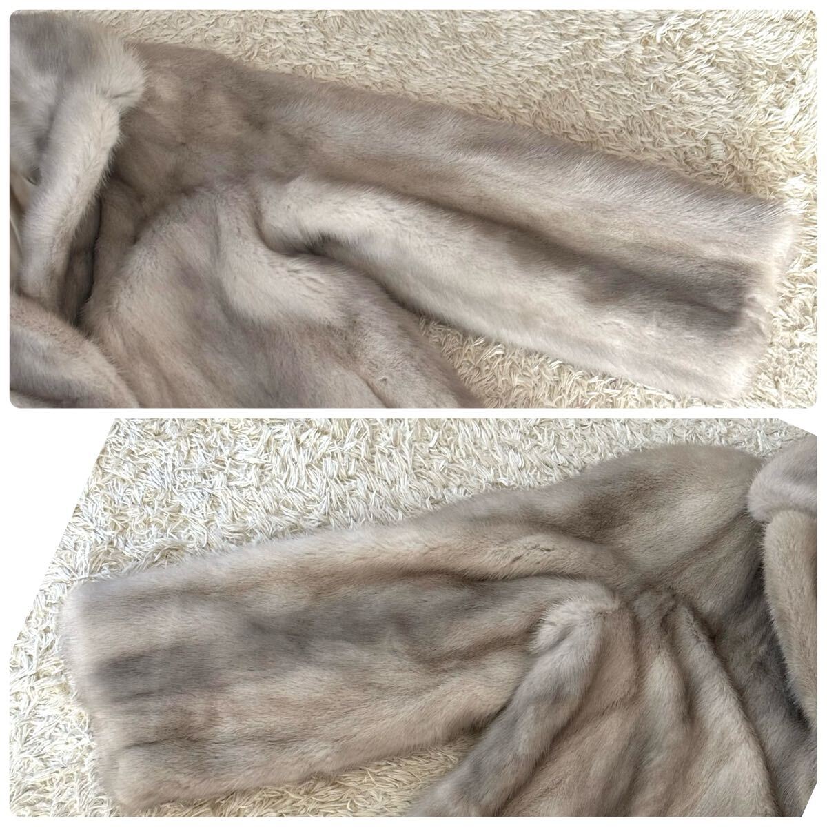 裾幅120cm●サファイアミンク リアルファー ファーコート 本毛皮 貂 毛並み◎なめし柔らか 裏地刺繍 花柄 クロスミンク MINK ミドル ハーフ