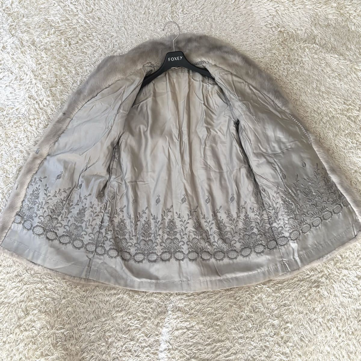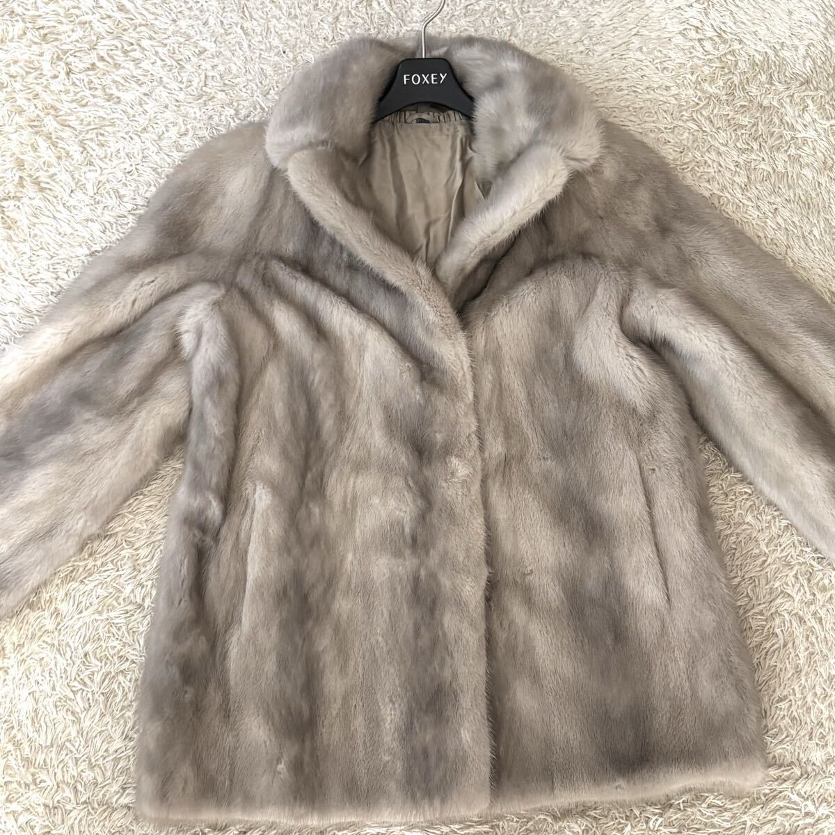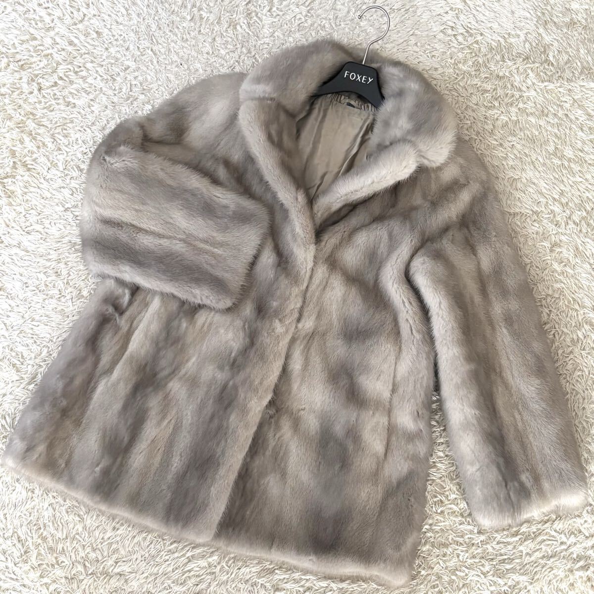 裾幅120cm●サファイアミンク リアルファー ファーコート 本毛皮 貂 毛並み◎なめし柔らか 裏地刺繍 花柄 クロスミンク MINK ミドル ハーフ